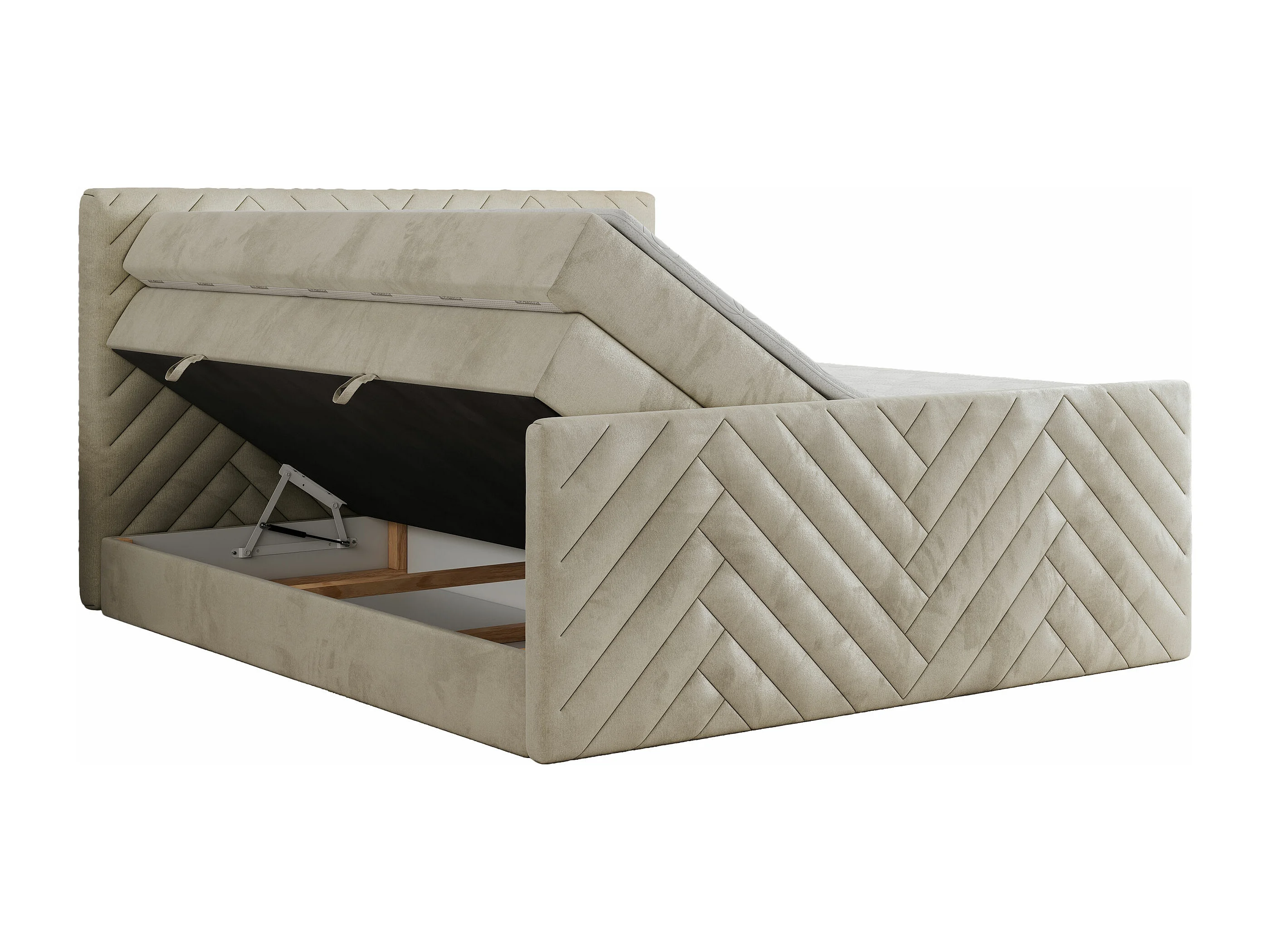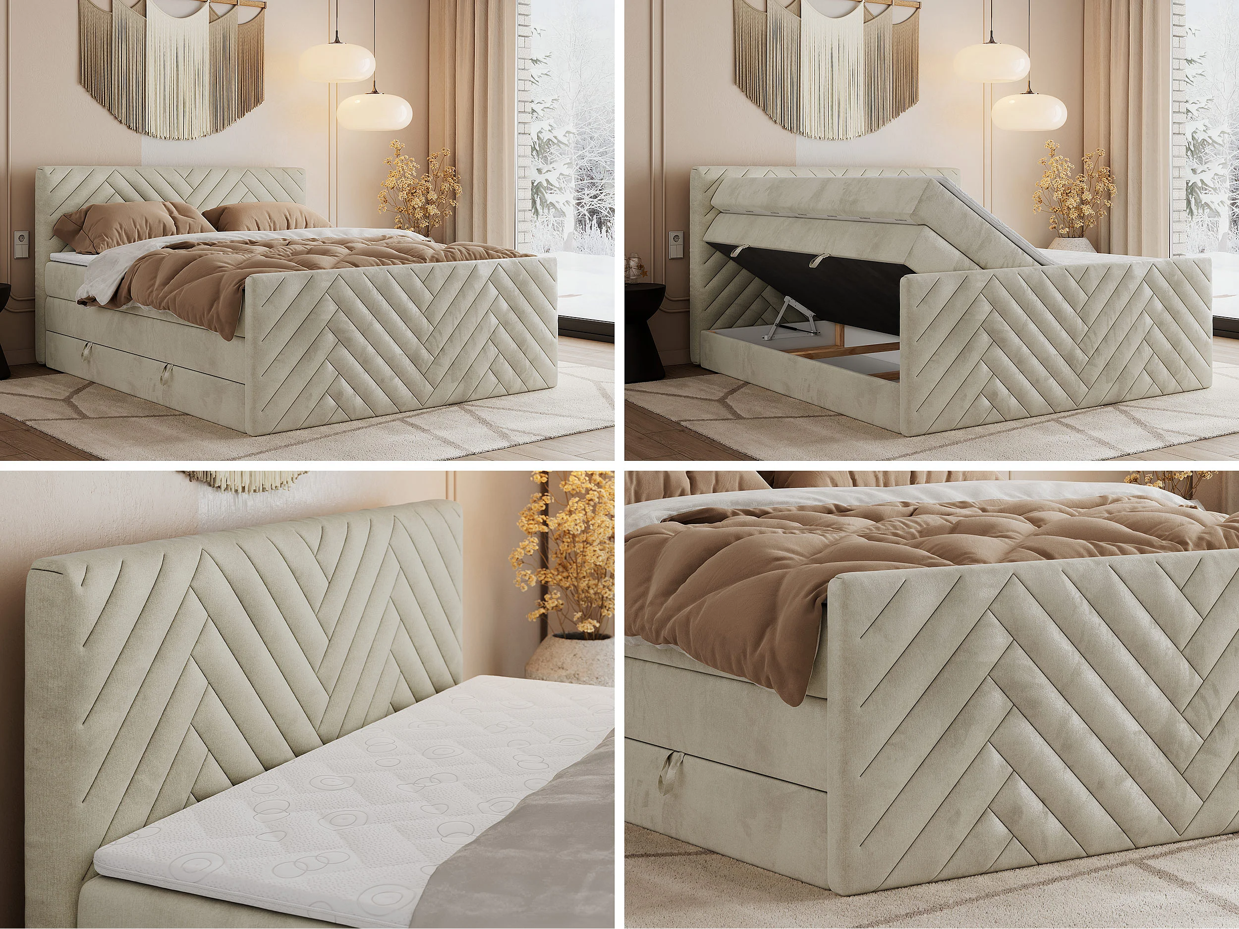 Boxspringbett PARIS KING DUO - dekorative Kopfstütze und Front, zwei Multipocket-Matratze mit Topper - 200x200 cm - H4 - Beige Velvet