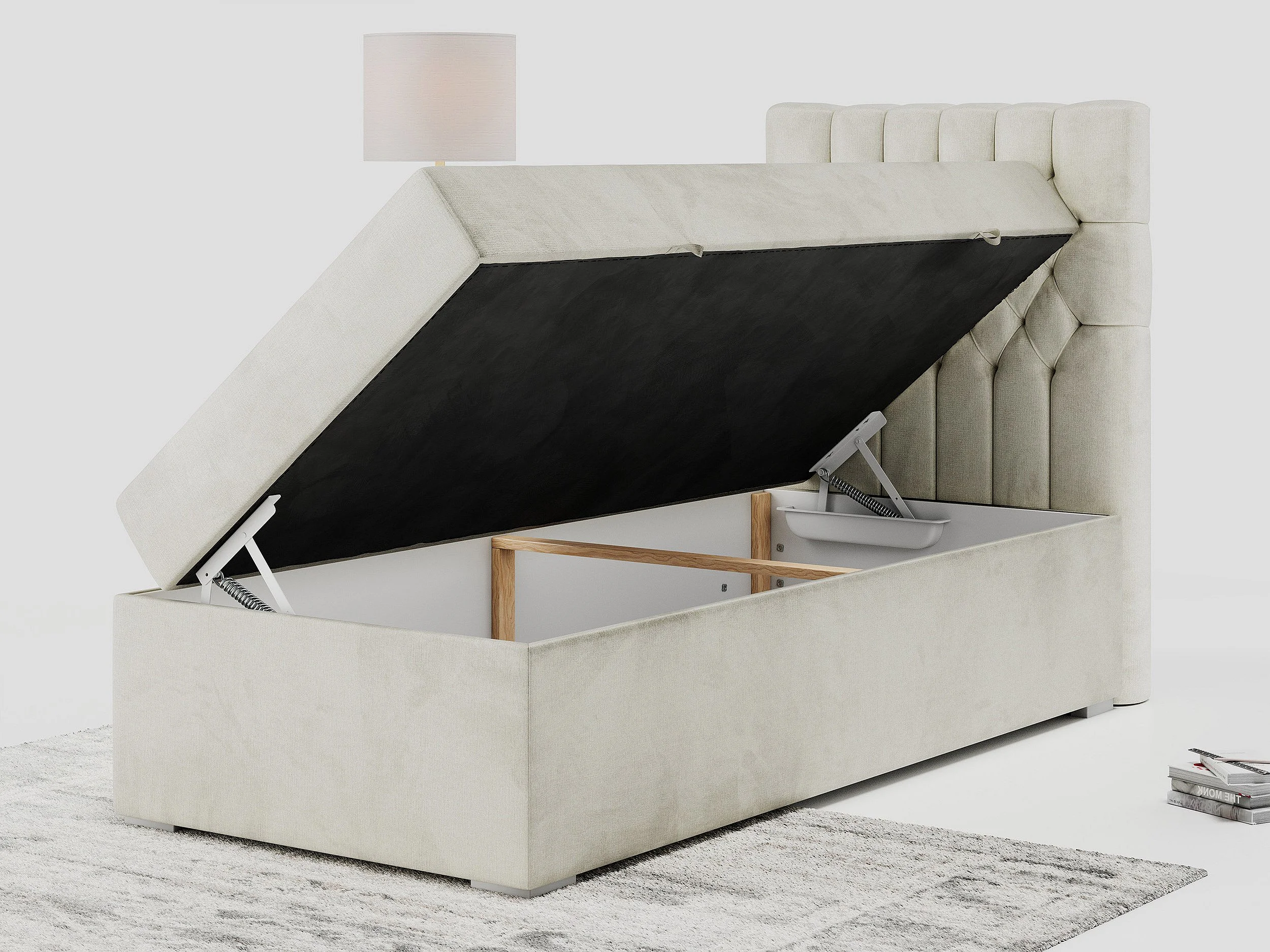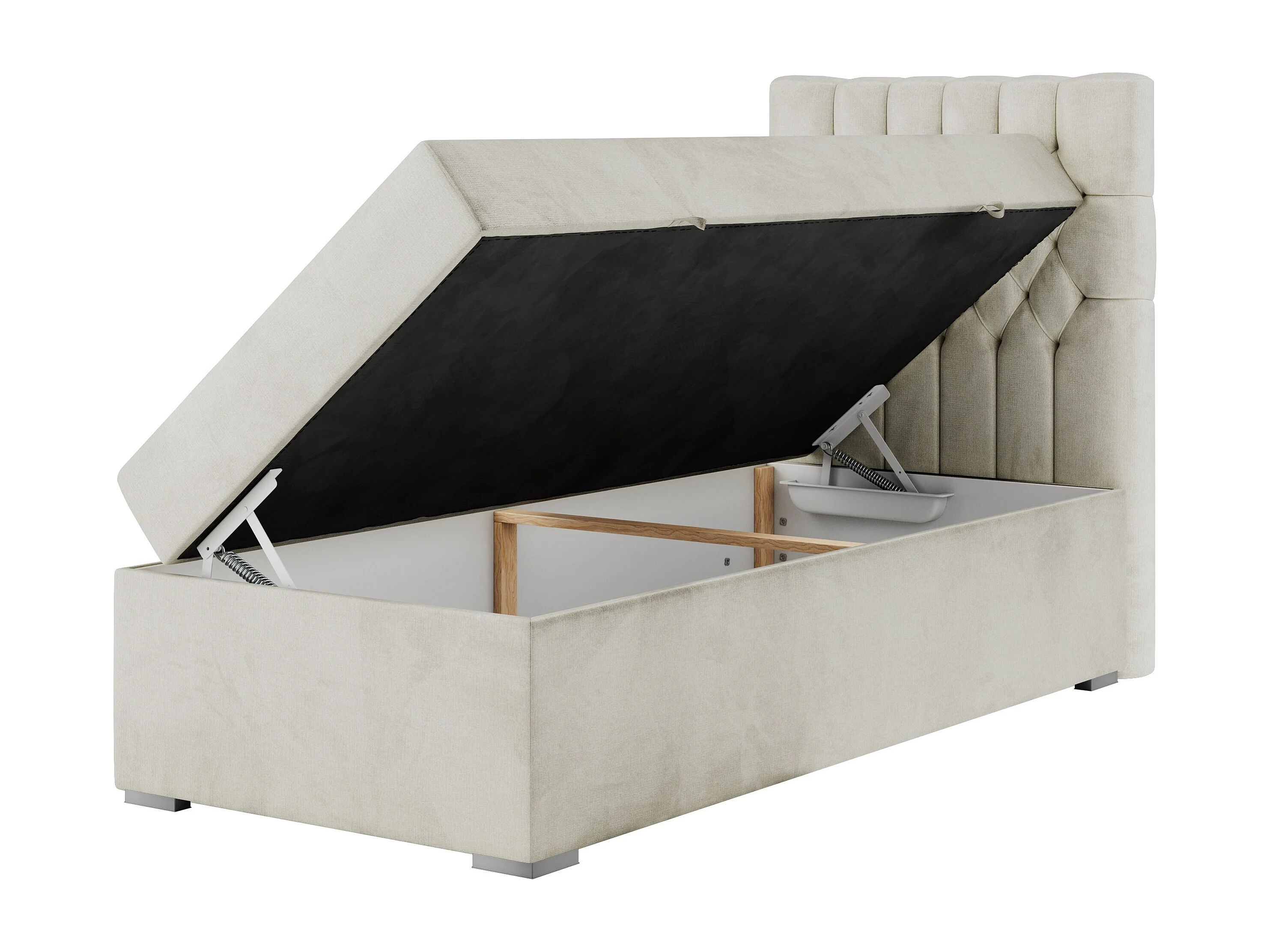 Boxspringbett PERA - Einzelbett mit Kopfstütze, Polsterbett, Multipocket-Matratze, genähtes Kopfteil - 90x200 cm - H3 - Beige Velvet - Rechts Seite