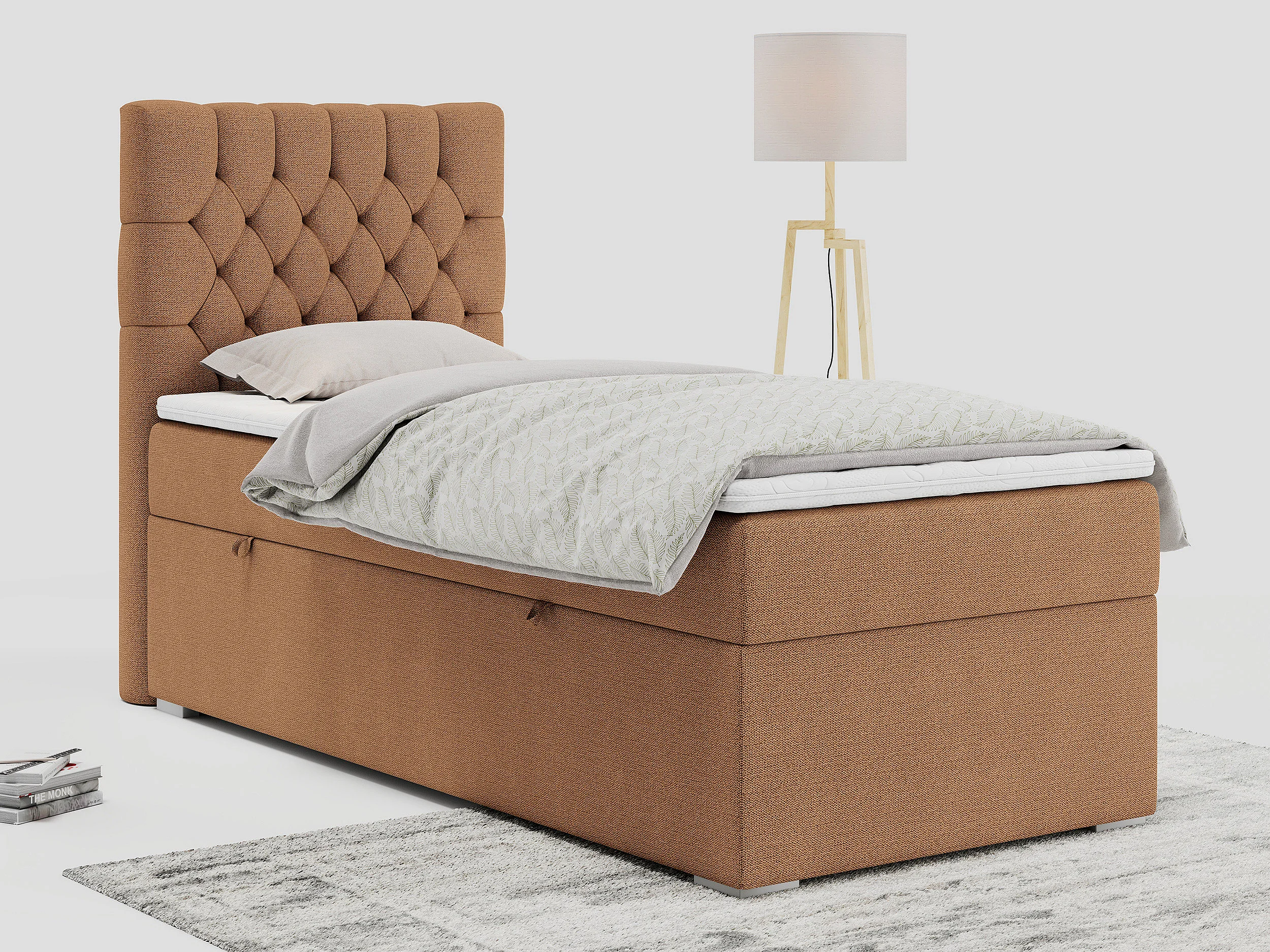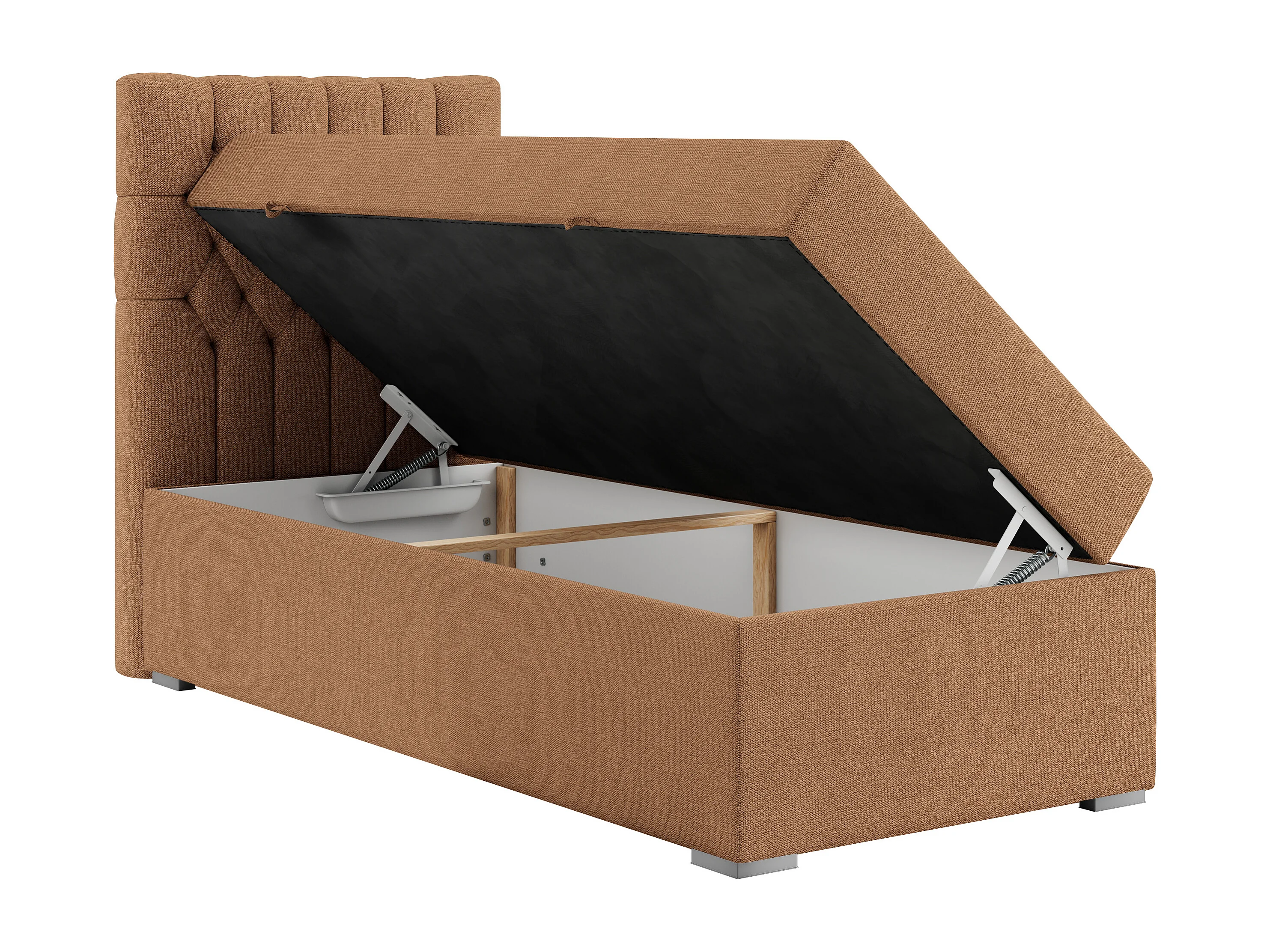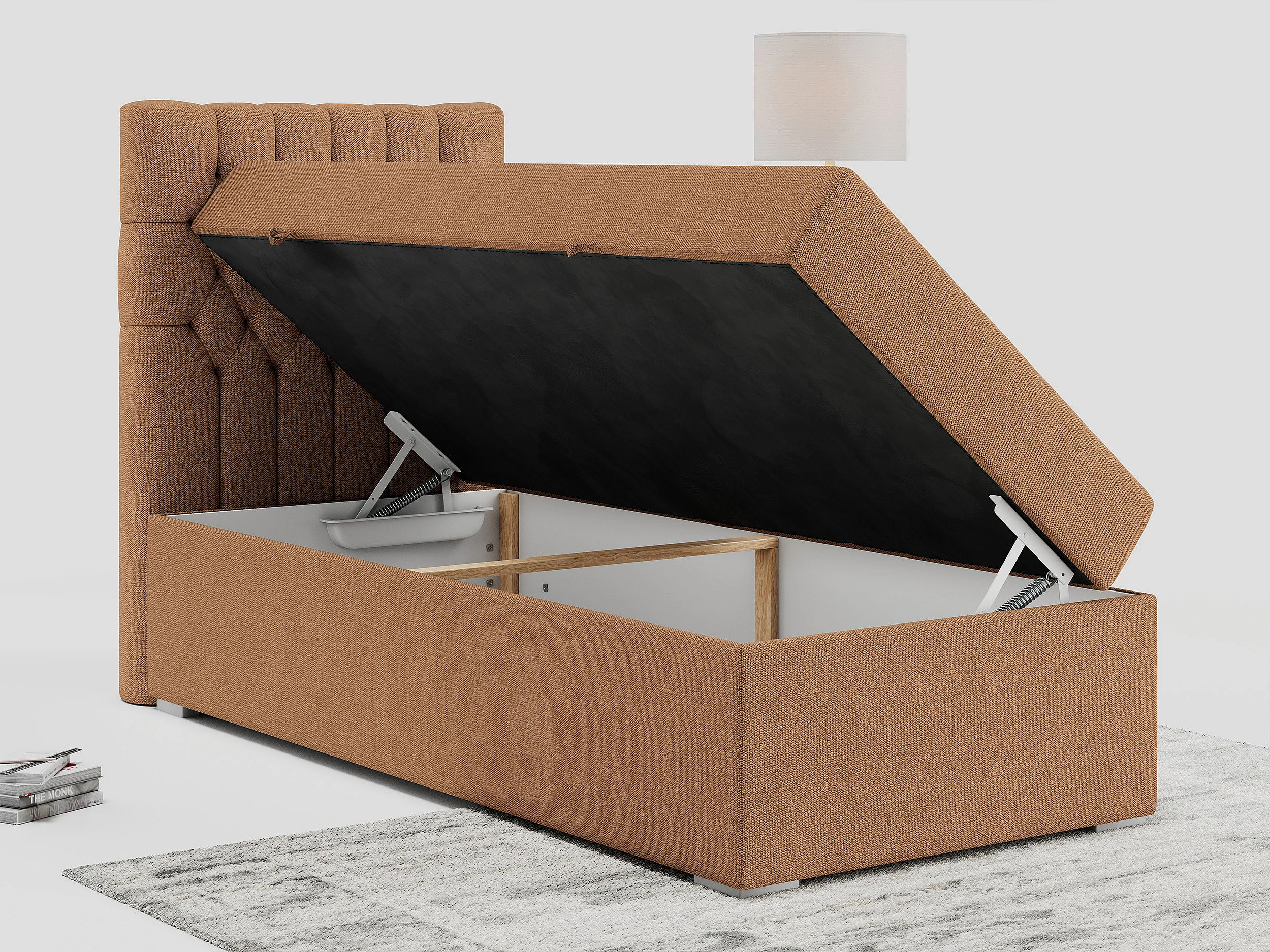 Boxspringbett PERA - Einzelbett mit Kopfstütze, Polsterbett, Multipocket-Matratze, genähtes Kopfteil - 90x200 cm - H3 - Orange Strukture - Links Seite