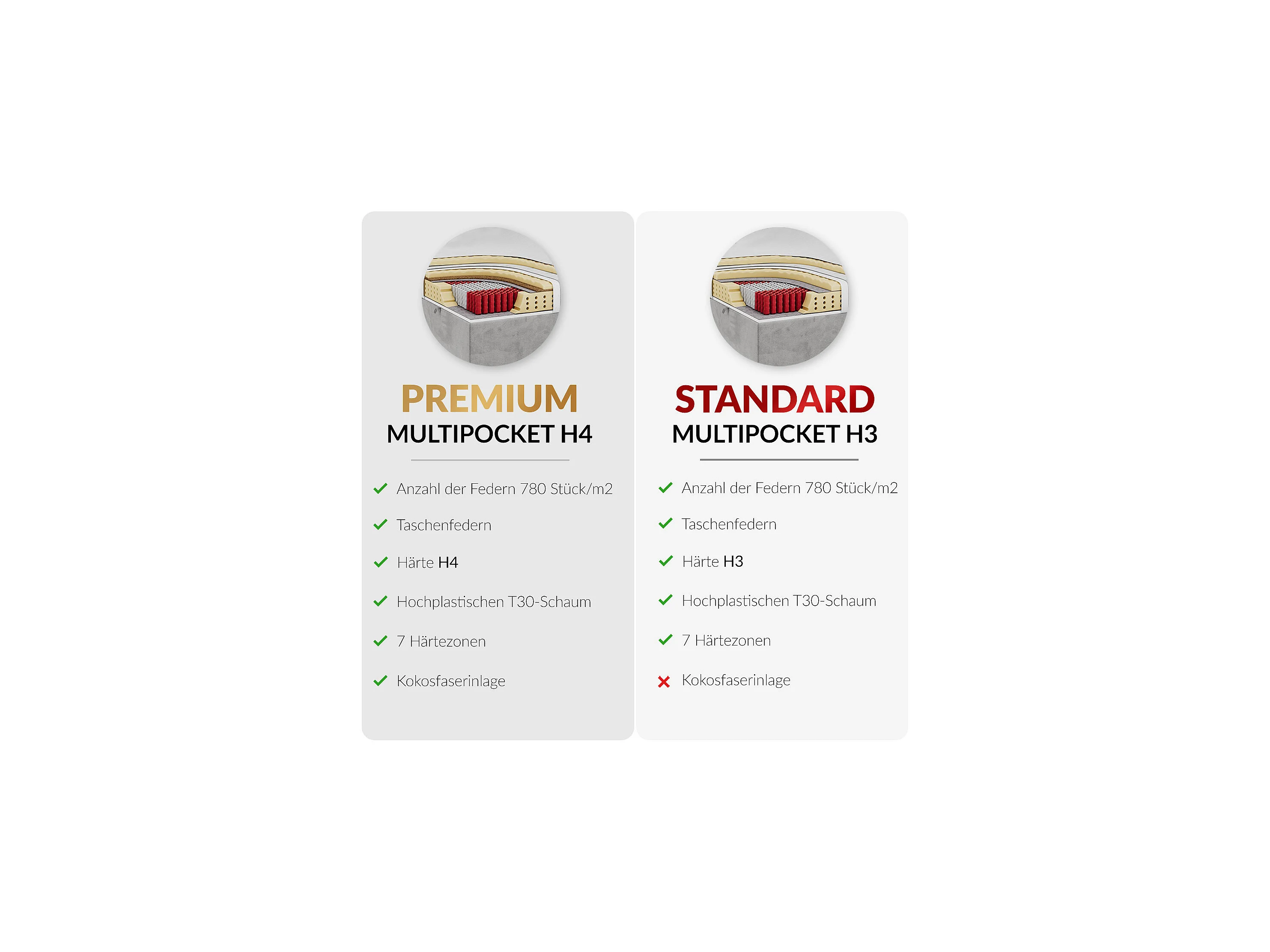 Boxspringbett PERA - Einzelbett mit Kopfstütze, Polsterbett, Multipocket-Matratze, genähtes Kopfteil - 90x200 cm - H3 - Schwarz Kunstleder - Rechts Seite