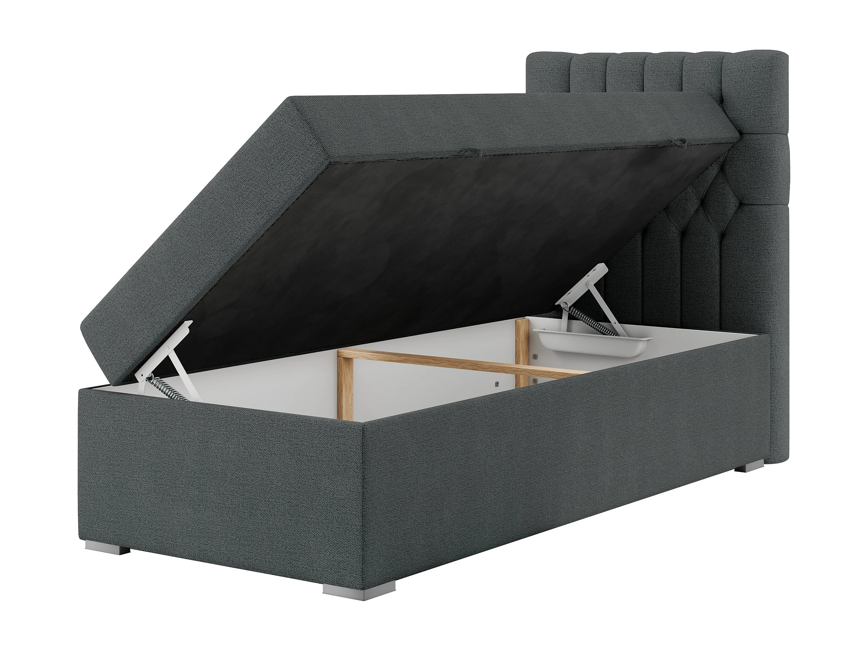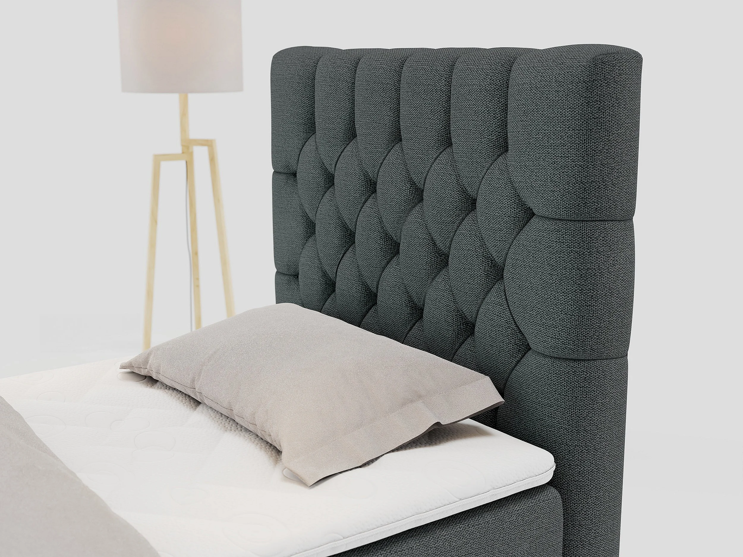 Boxspringbett PERA - Einzelbett mit Kopfstütze, Polsterbett, Multipocket-Matratze, genähtes Kopfteil - 90x200 cm - H4 - Dunkelgrau Strukture - Rechts Seite