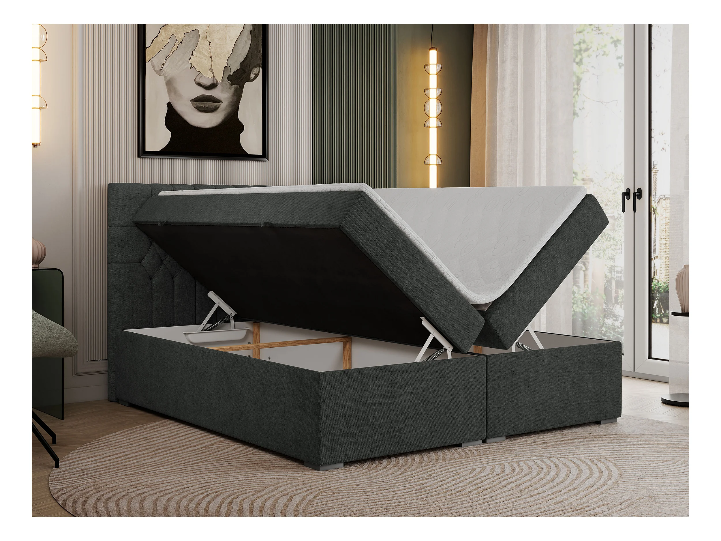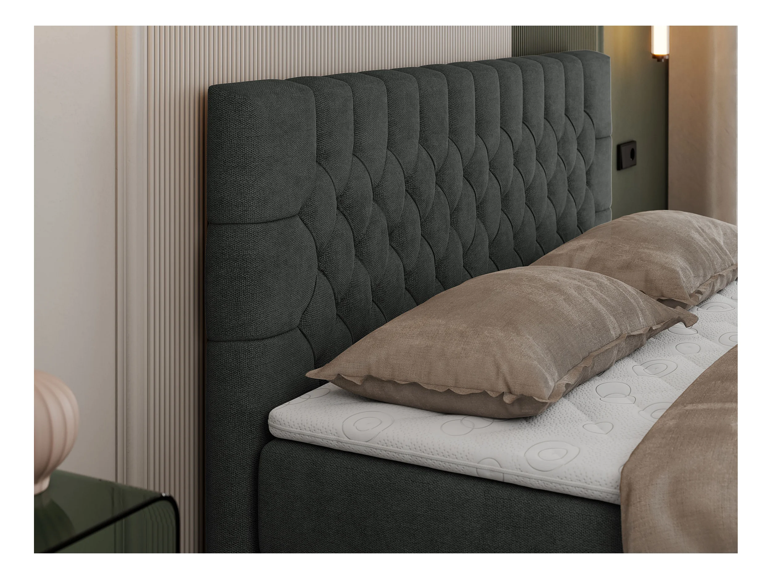 Boxspringbett PERA - gesteppte Kopfstütze, Multipocket-Matratze und Topper, Doppelbett mit Stauraum - 120x200 cm - H3 - Dunkelgrau Strukture