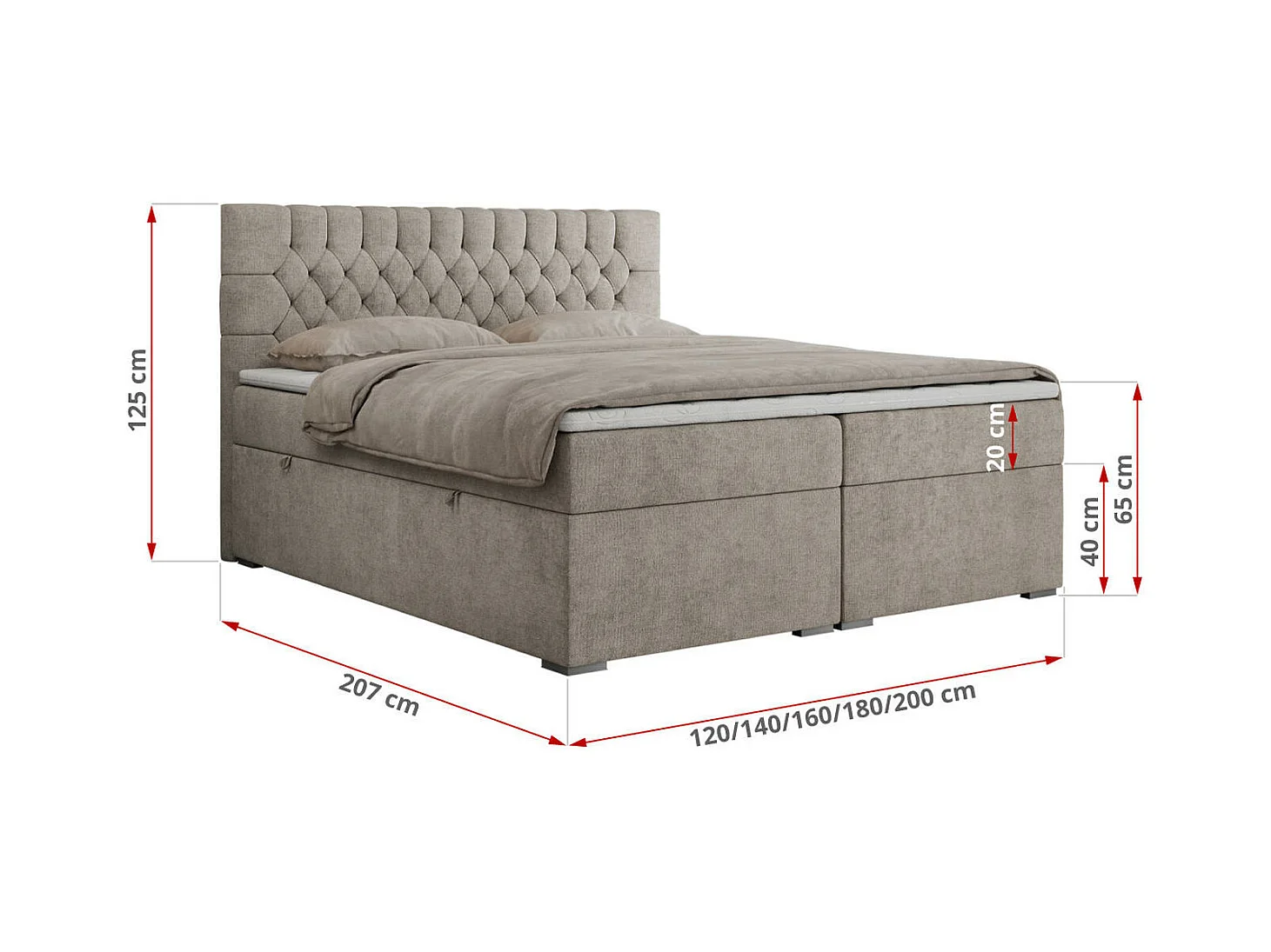 Boxspringbett PERA - gesteppte Kopfstütze, Multipocket-Matratze und Topper, Doppelbett mit Stauraum - 140x200 cm - H3 - Beige Strukture