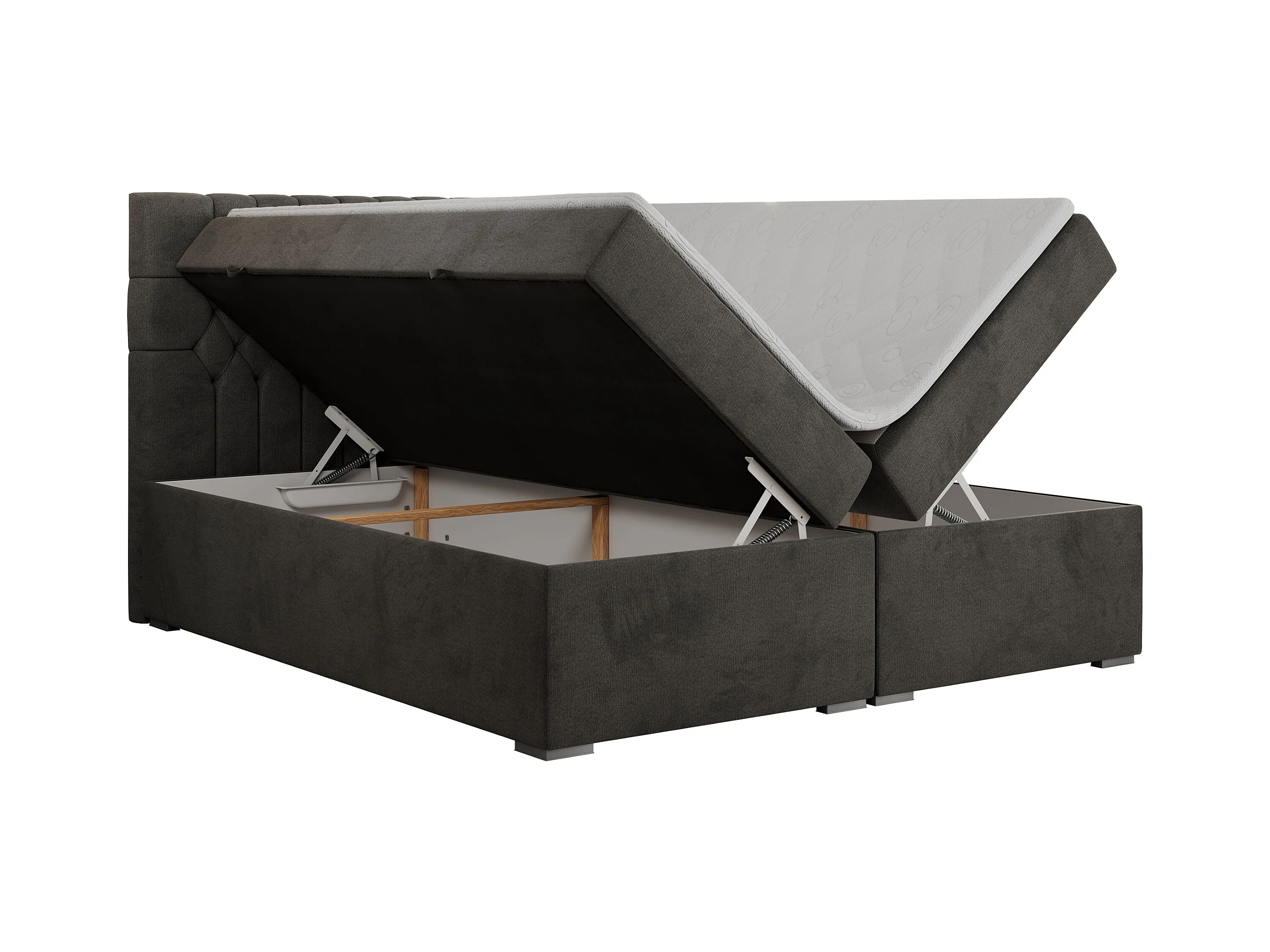 Boxspringbett PERA - gesteppte Kopfstütze, Multipocket-Matratze und Topper, Doppelbett mit Stauraum - 140x200 cm - H3 - Dunkelgrau Velvet
