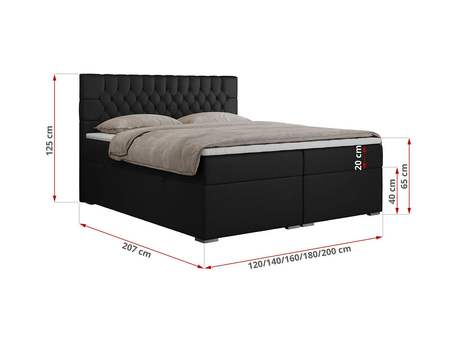Boxspringbett PERA - gesteppte Kopfstütze, Multipocket-Matratze und Topper, Doppelbett mit Stauraum - 140x200 cm - H3 - Schwarz Kunstleder