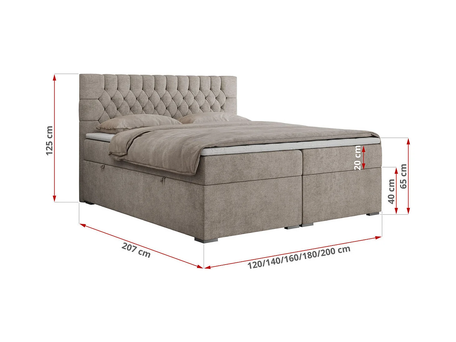 Boxspringbett PERA - gesteppte Kopfstütze, Multipocket-Matratze und Topper, Doppelbett mit Stauraum - 180x200 cm - H3 - Beige Strukture