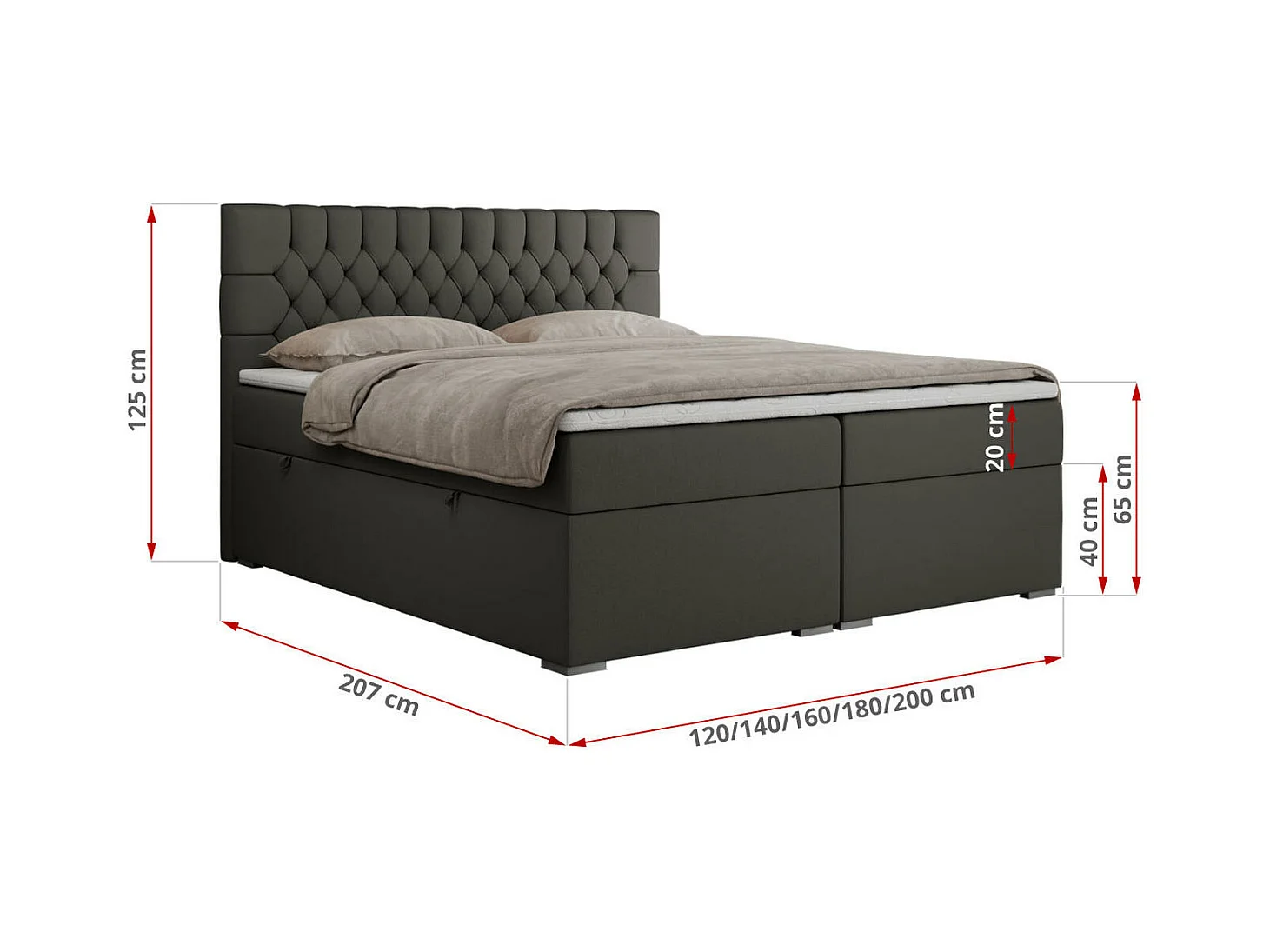 Boxspringbett PERA - gesteppte Kopfstütze, Multipocket-Matratze und Topper, Doppelbett mit Stauraum - 180x200 cm - H3 - Dunkelgrau Kunstleder