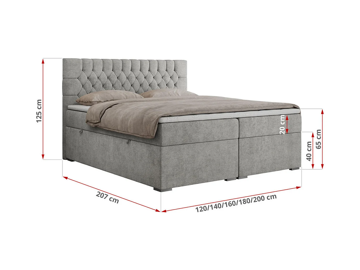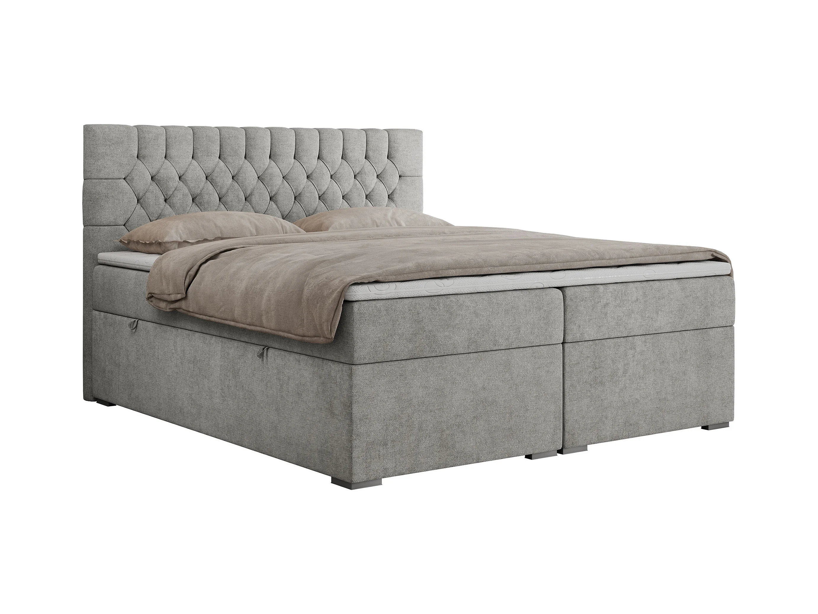 Boxspringbett PERA - gesteppte Kopfstütze, Multipocket-Matratze und Topper, Doppelbett mit Stauraum - 180x200 cm - H3 - Hellgrau Strukture