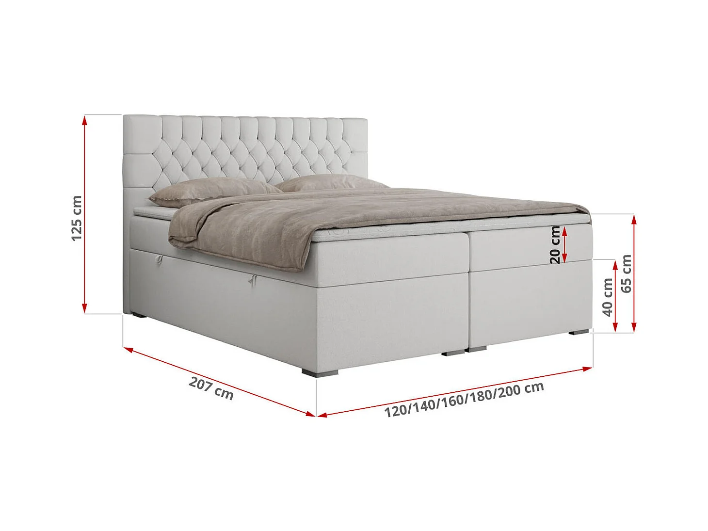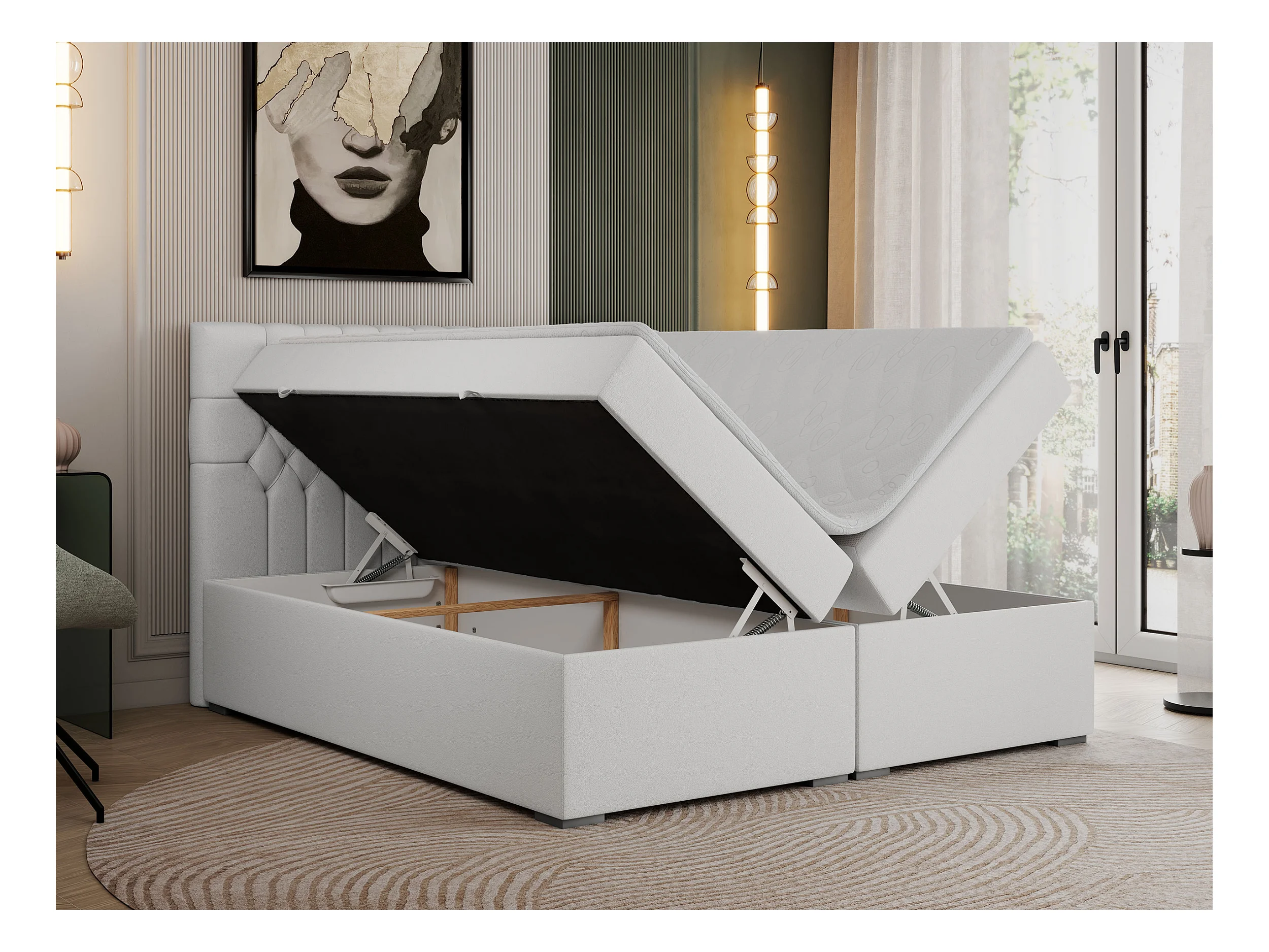 Boxspringbett PERA - gesteppte Kopfstütze, Multipocket-Matratze und Topper, Doppelbett mit Stauraum - 180x200 cm - H3 - Weiß Kunstleder