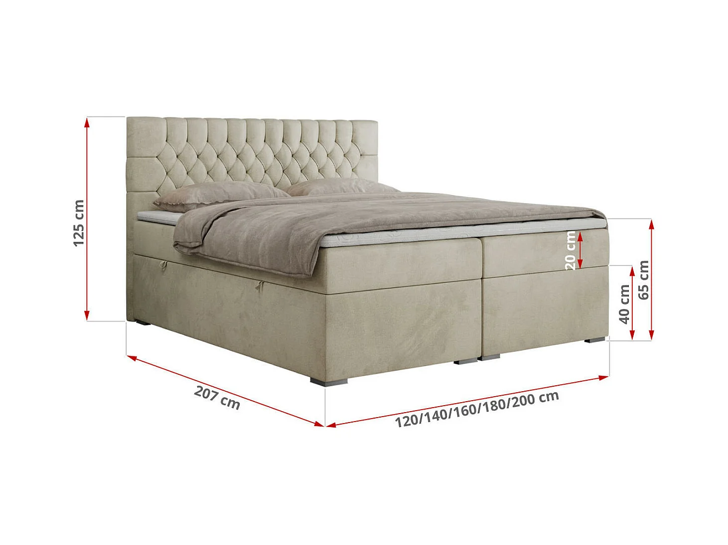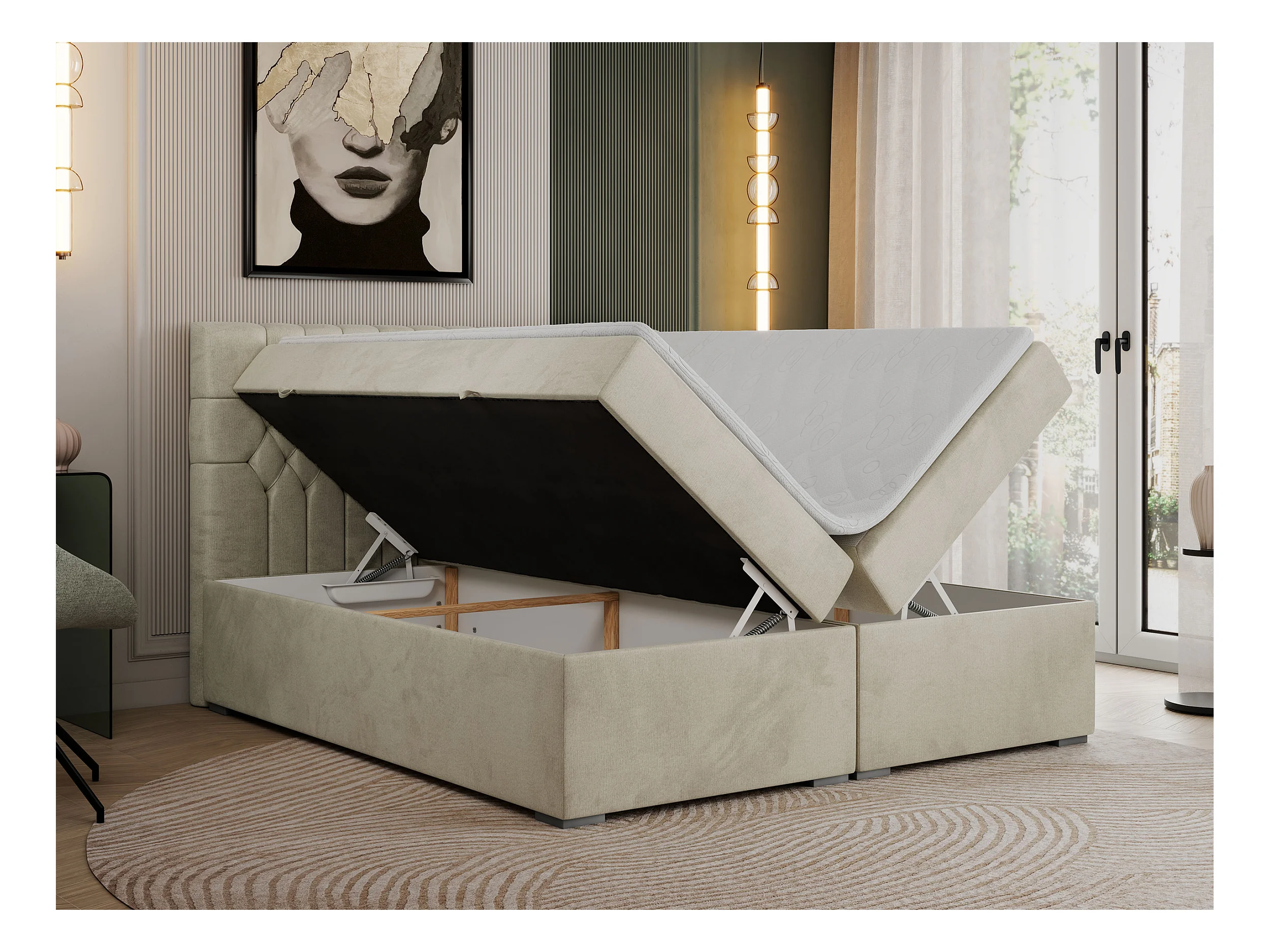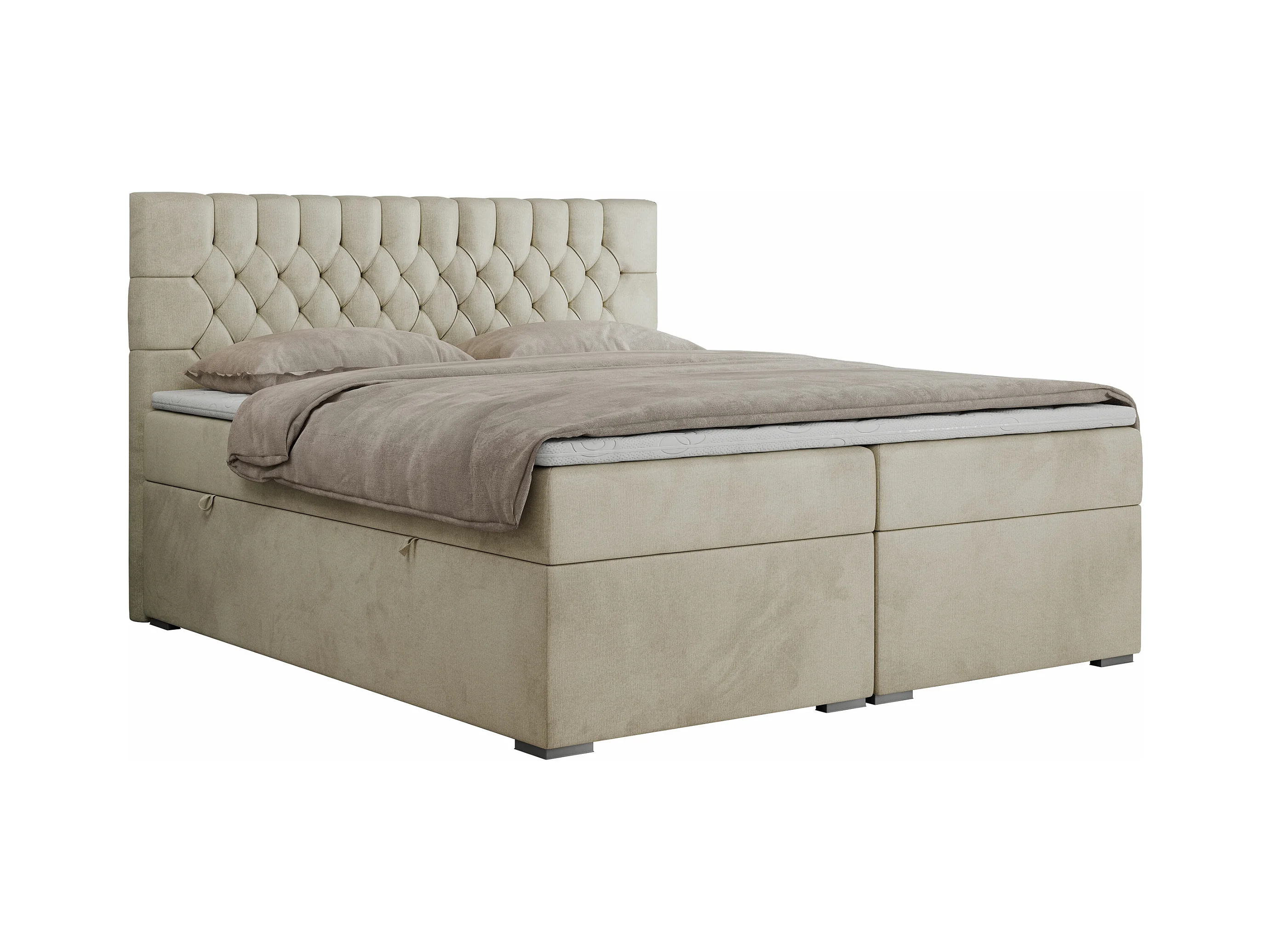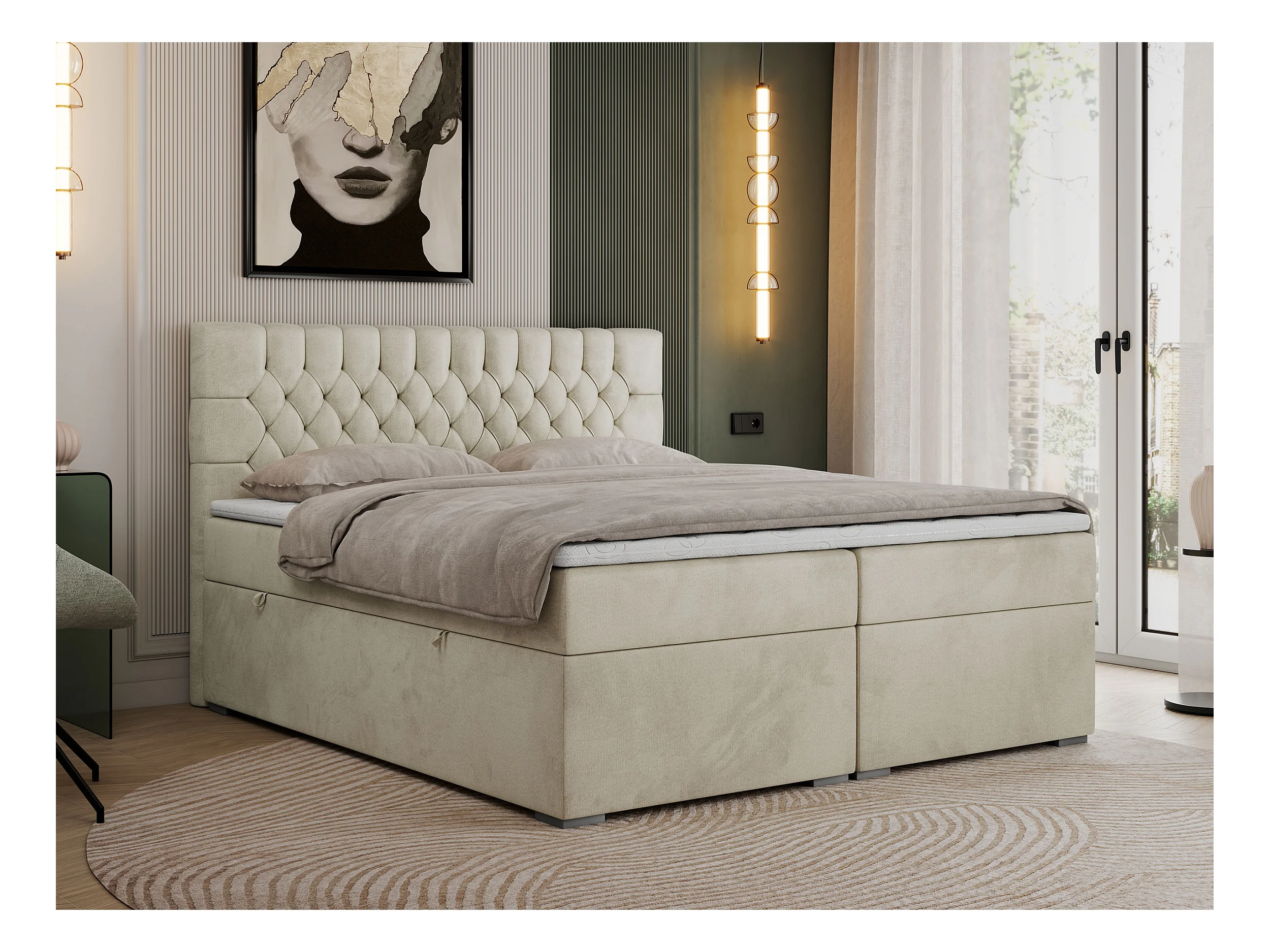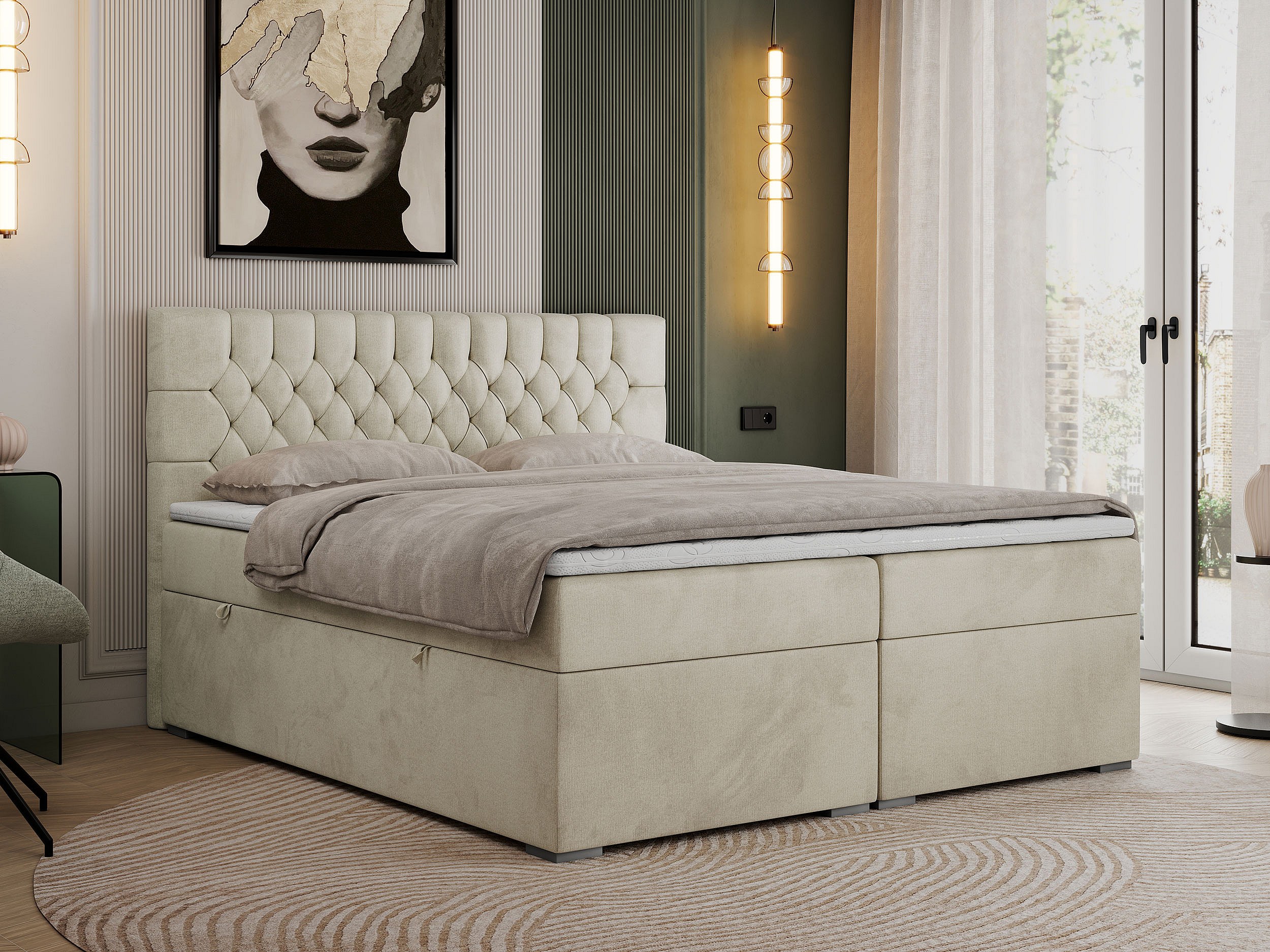 Boxspringbett PERA - gesteppte Kopfstütze, Multipocket-Matratze und Topper, Doppelbett mit Stauraum - 200x200 cm - H3 - Beige Velvet