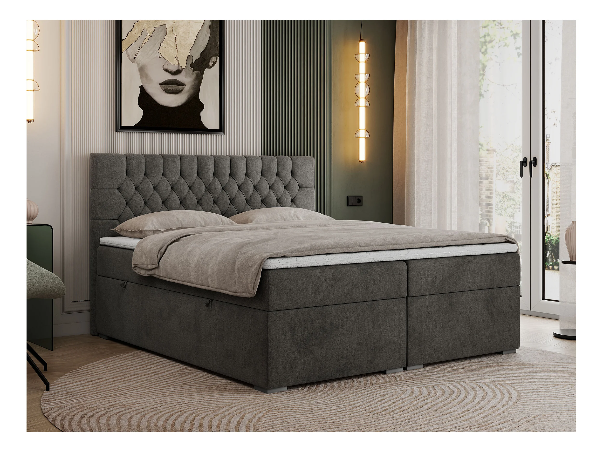 Boxspringbett PERA - gesteppte Kopfstütze, Multipocket-Matratze und Topper, Doppelbett mit Stauraum - 200x200 cm - H3 - Dunkelgrau Velvet