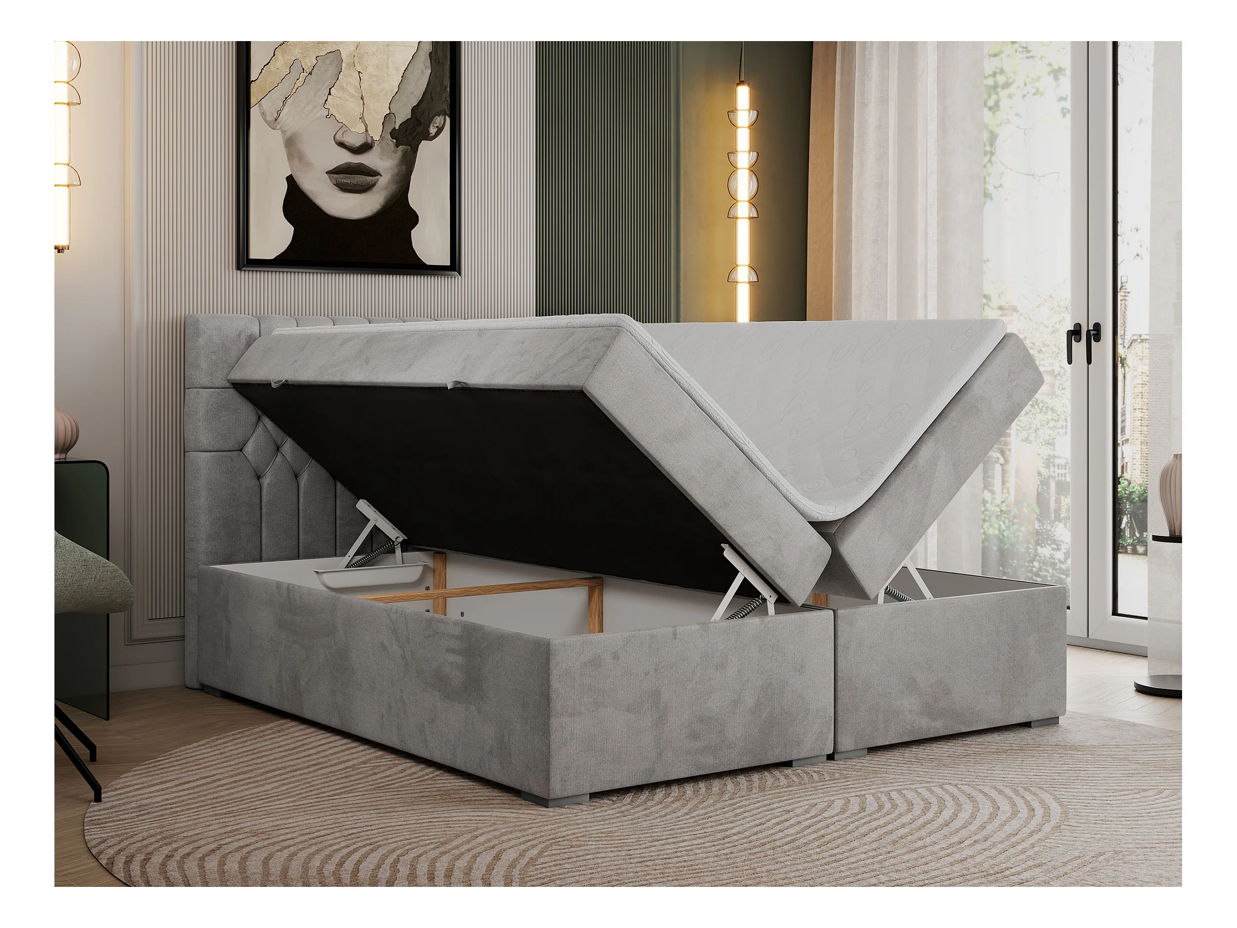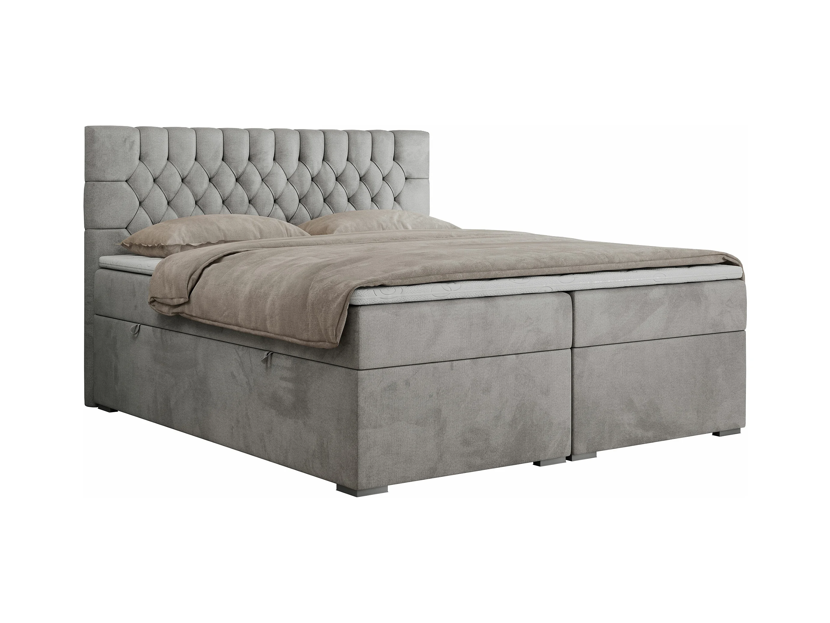 Boxspringbett PERA - gesteppte Kopfstütze, Multipocket-Matratze und Topper, Doppelbett mit Stauraum - 200x200 cm - H3 - Hellgrau Velvet