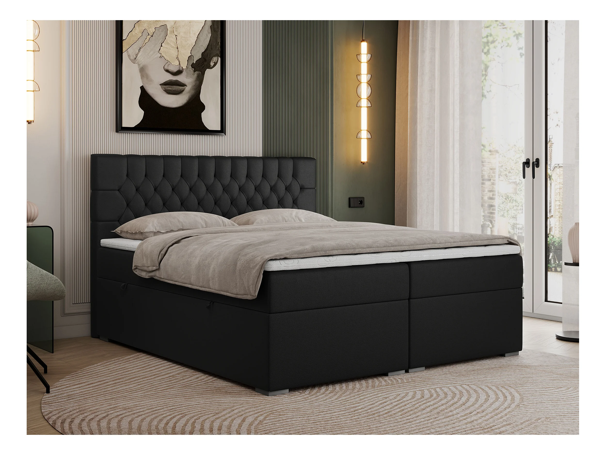 Boxspringbett PERA - gesteppte Kopfstütze, Multipocket-Matratze und Topper, Doppelbett mit Stauraum - 200x200 cm - H3 - Schwarz Kunstleder