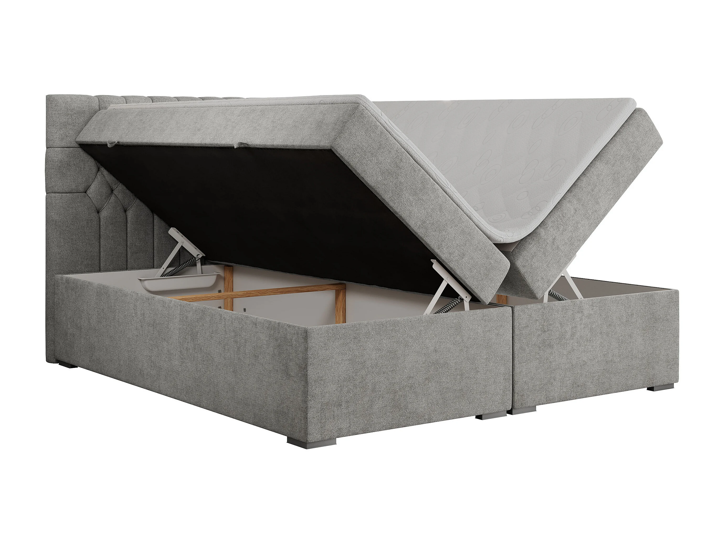 Boxspringbett PERA - gesteppte Kopfstütze, Multipocket-Matratze und Topper, Doppelbett mit Stauraum - 200x200 cm - H4 - Hellgrau Strukture