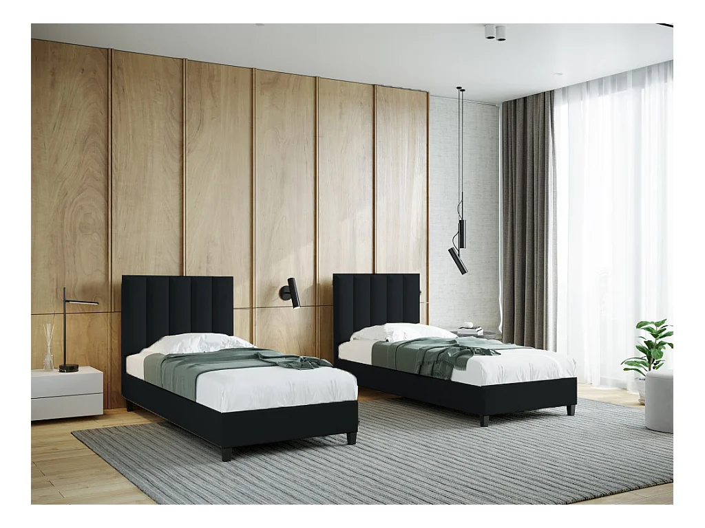 Boxspringbett Polsterbett Einzelbett KONGO ohne Matratze 90 x 200 cm Bett Schlafzimmer Jugendbett Kinderbett Hotelzimmer, schwarz
