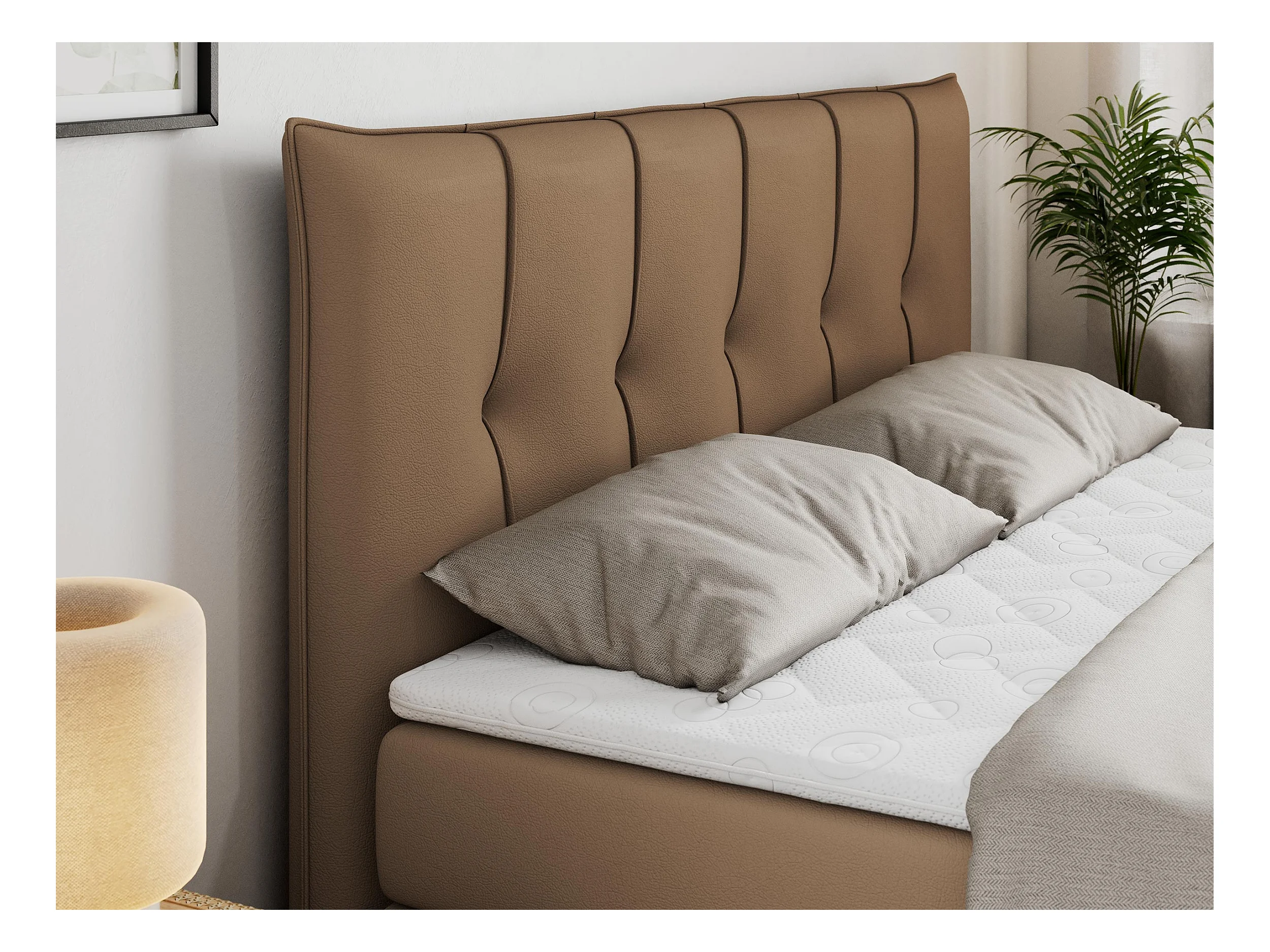 Boxspringbett PREMIUM 10 KING, Doppelbett mit Stauraum, gesteppte Kopfstütze, Multipocket-Matratze - 140x200 cm - H3 - Braun Kunstleder