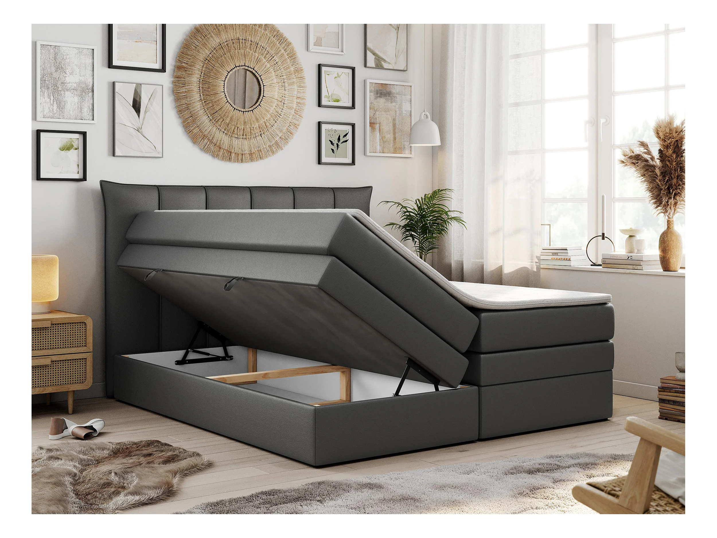Boxspringbett PREMIUM 10 KING, Doppelbett mit Stauraum, gesteppte Kopfstütze, Multipocket-Matratze - 140x200 cm - H4 - Dunkelgrau Kunstleder