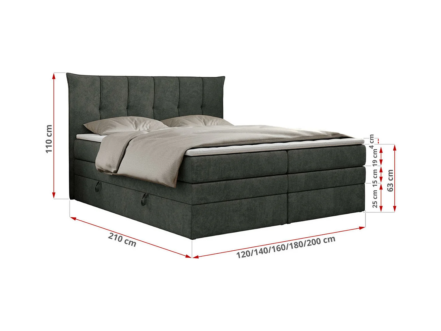 Boxspringbett PREMIUM 10 KING, Doppelbett mit Stauraum, gesteppte Kopfstütze, Multipocket-Matratze - 160x200 cm - H4 - Dunkelgrau Strukture