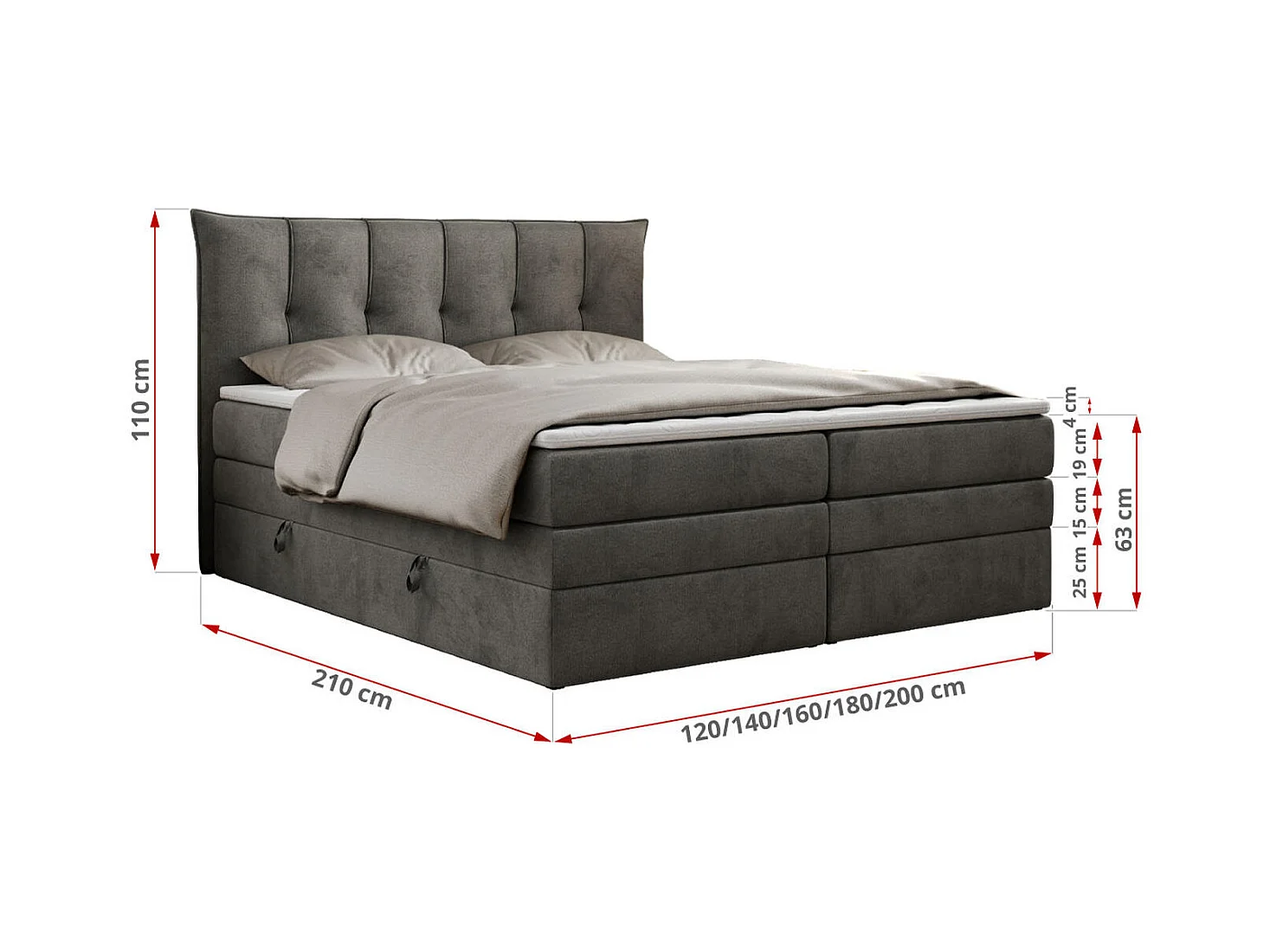 Boxspringbett PREMIUM 10 KING, Doppelbett mit Stauraum, gesteppte Kopfstütze, Multipocket-Matratze - 160x200 cm - H4 - Dunkelgrau Velvet