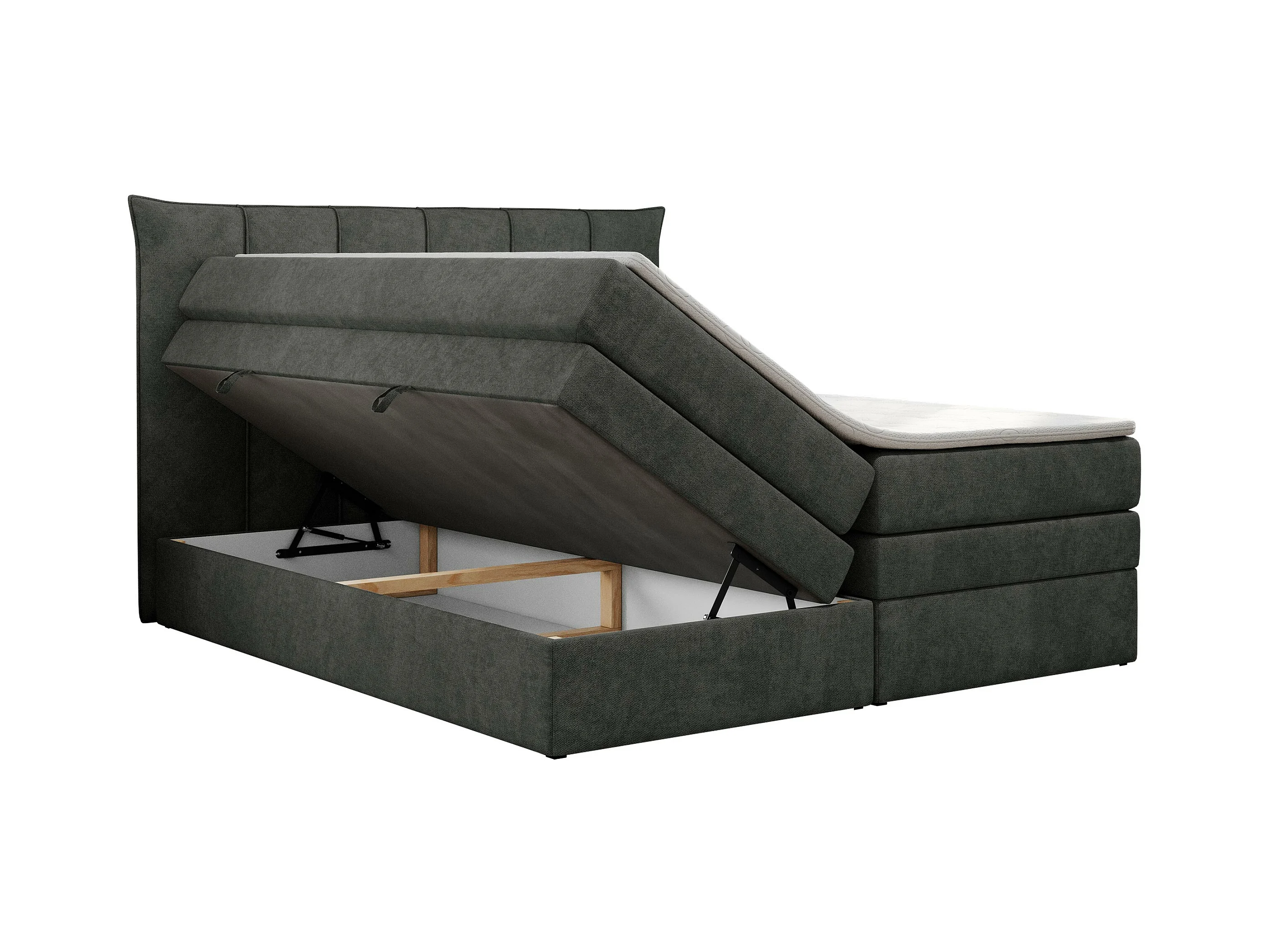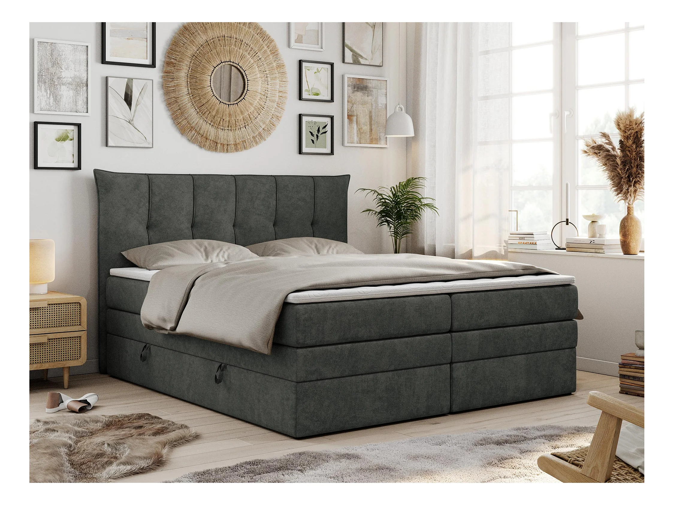 Boxspringbett PREMIUM 10 KING, Doppelbett mit Stauraum, gesteppte Kopfstütze, Multipocket-Matratze - 180x200 cm - H4 - Dunkelgrau Strukture