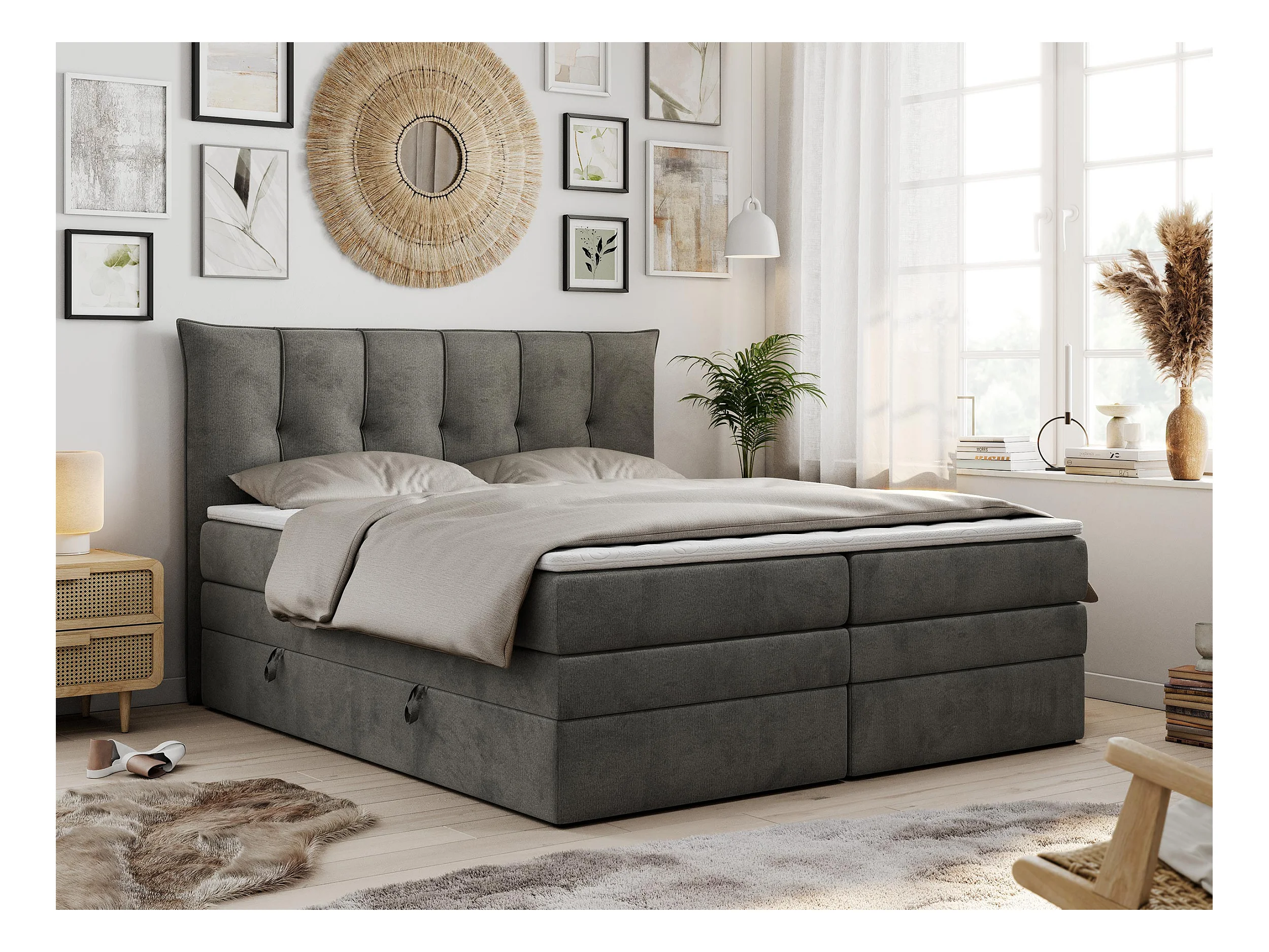 Boxspringbett PREMIUM 10 KING, Doppelbett mit Stauraum, gesteppte Kopfstütze, Multipocket-Matratze - 180x200 cm - H4 - Dunkelgrau Velvet