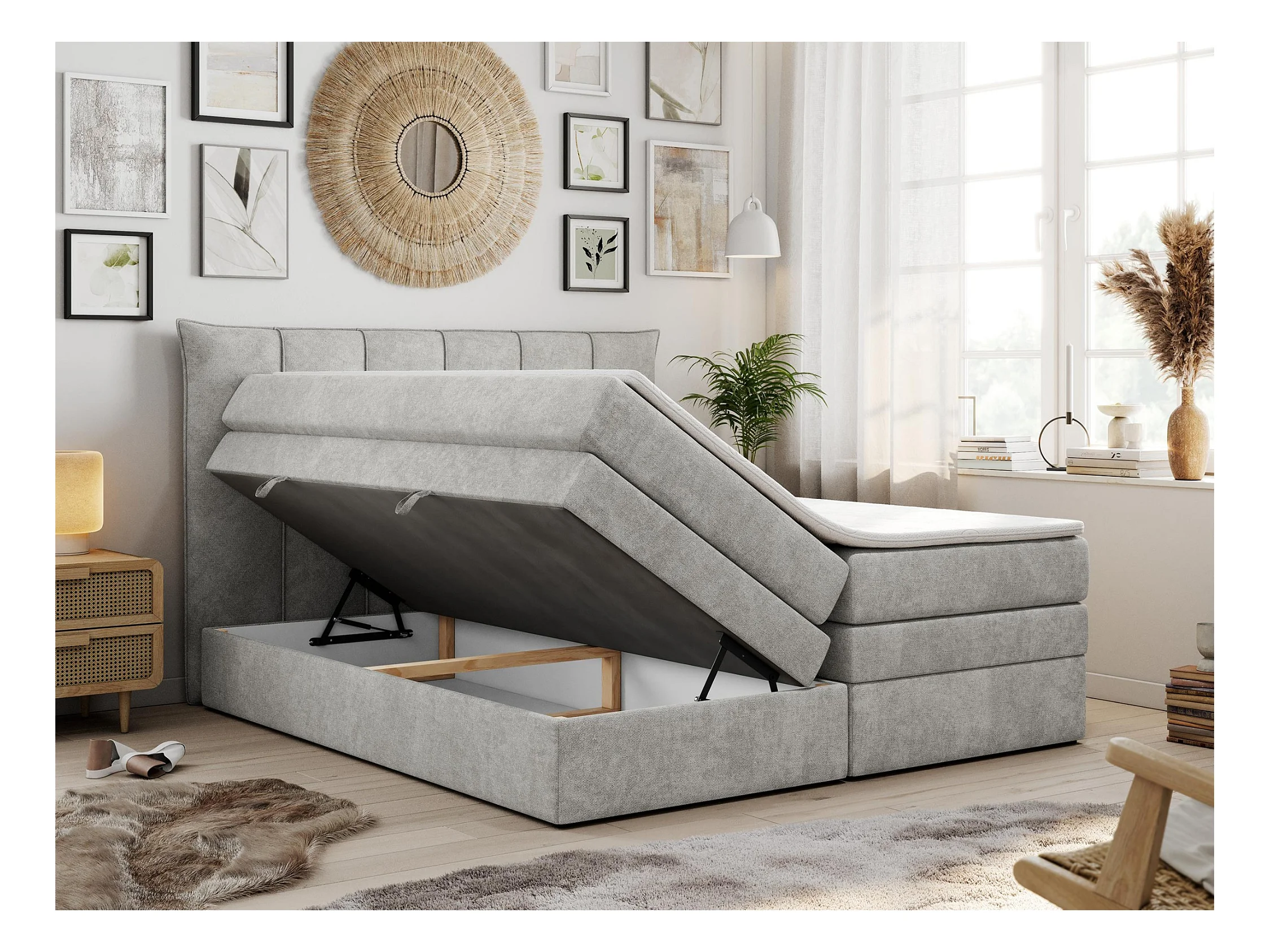 Boxspringbett PREMIUM 10 KING, Doppelbett mit Stauraum, gesteppte Kopfstütze, Multipocket-Matratze - 180x200 cm - H4 - Hellgrau Strukture