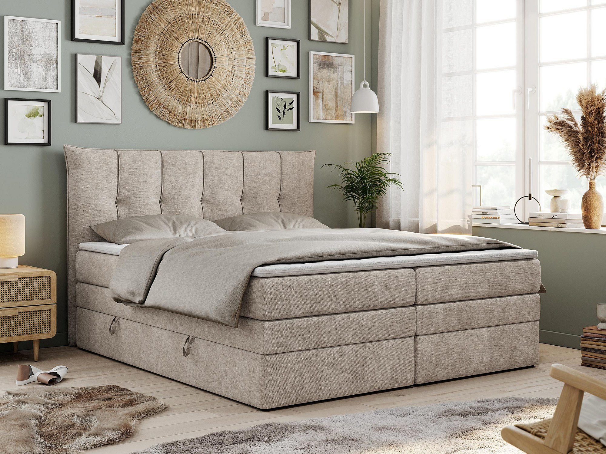 Boxspringbett PREMIUM 10 KING, Doppelbett mit Stauraum, gesteppte Kopfstütze, Multipocket-Matratze - 200x200 cm - H4 - Beige Strukture