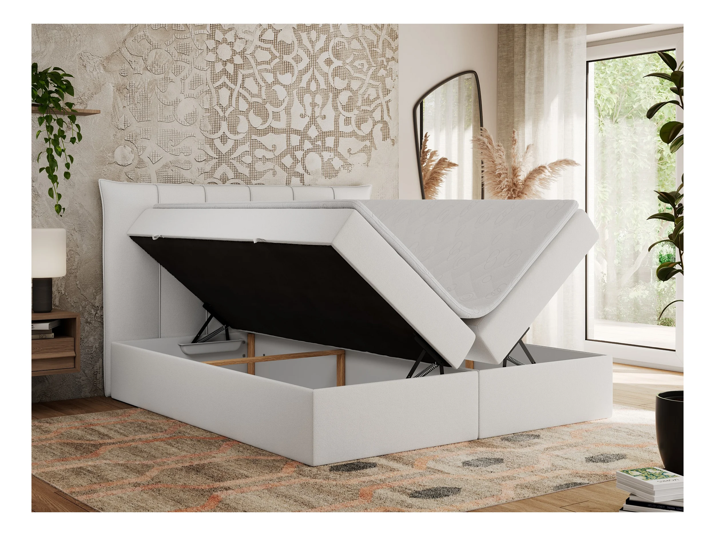 Boxspringbett PREMIUM 10 mit Multipocket-Matratze, gesteppte Kopfstütze, zwei Bettkästen - 120x200 cm - H3 - Weiß Kunstleder