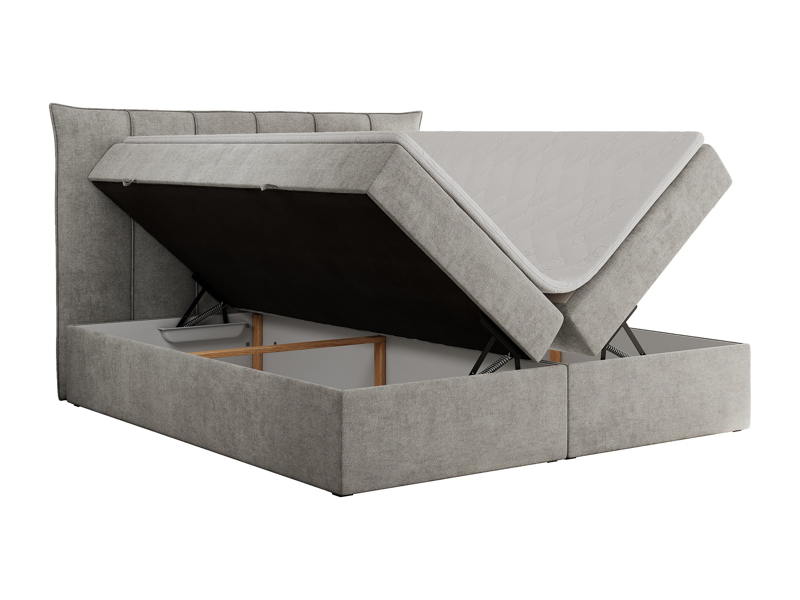 Boxspringbett PREMIUM 10 mit Multipocket-Matratze, gesteppte Kopfstütze, zwei Bettkästen - 120x200 cm - H4 - Hellgrau Strukture