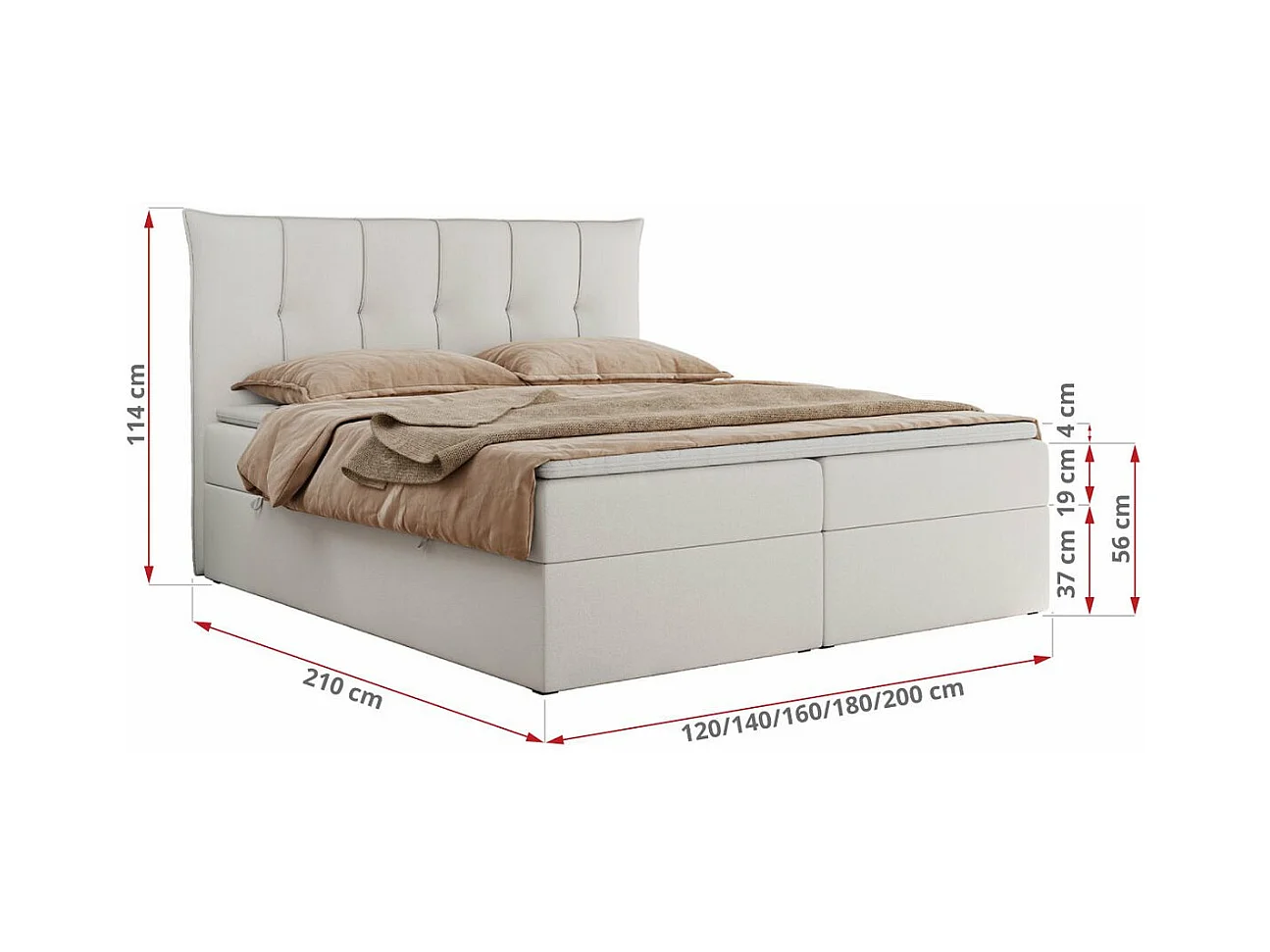 Boxspringbett PREMIUM 10 mit Multipocket-Matratze, gesteppte Kopfstütze, zwei Bettkästen - 140x200 cm - H3 - Weiß Kunstleder