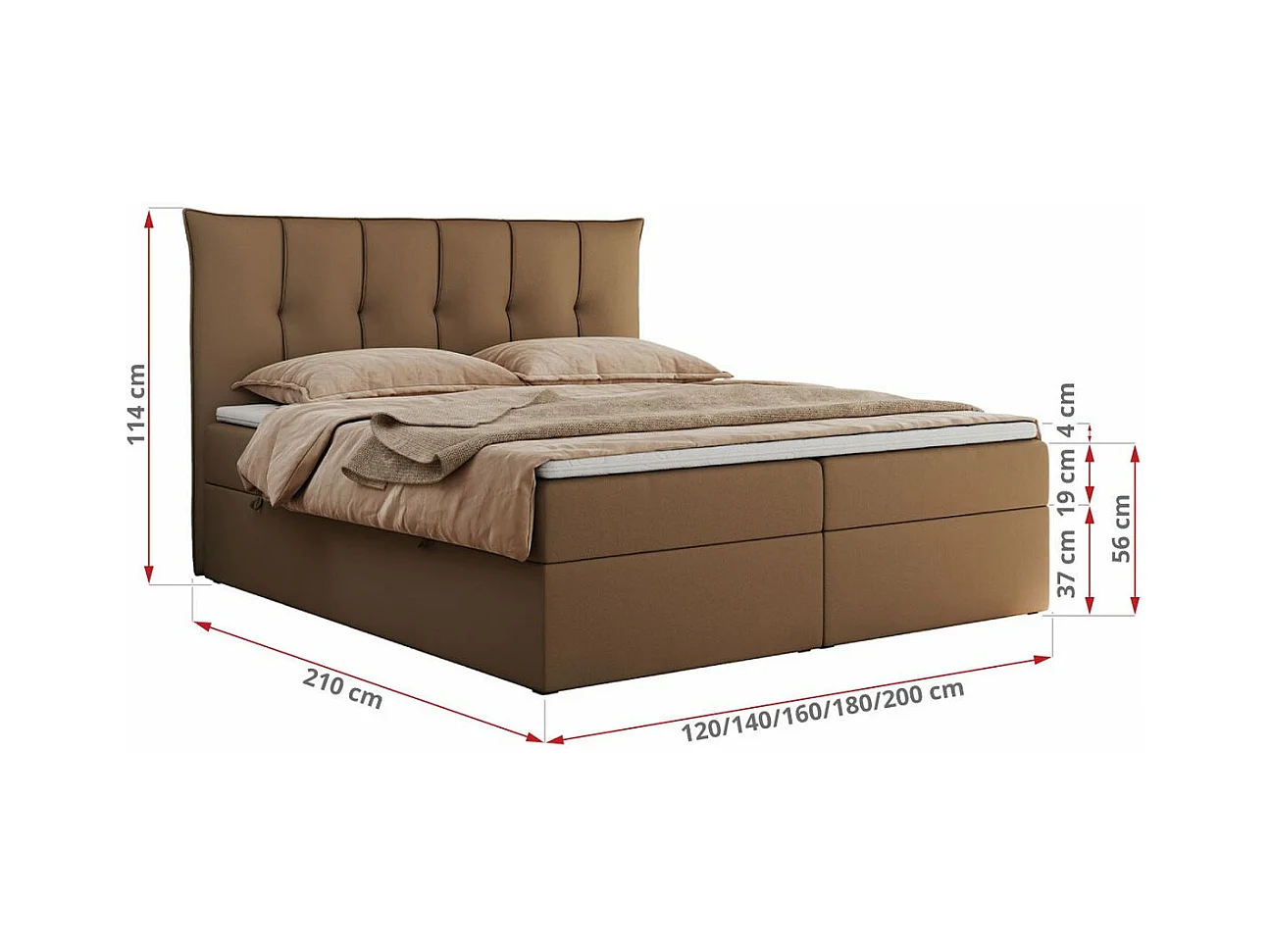 Boxspringbett PREMIUM 10 mit Multipocket-Matratze, gesteppte Kopfstütze, zwei Bettkästen - 140x200 cm - H4 - Braun Kunstleder