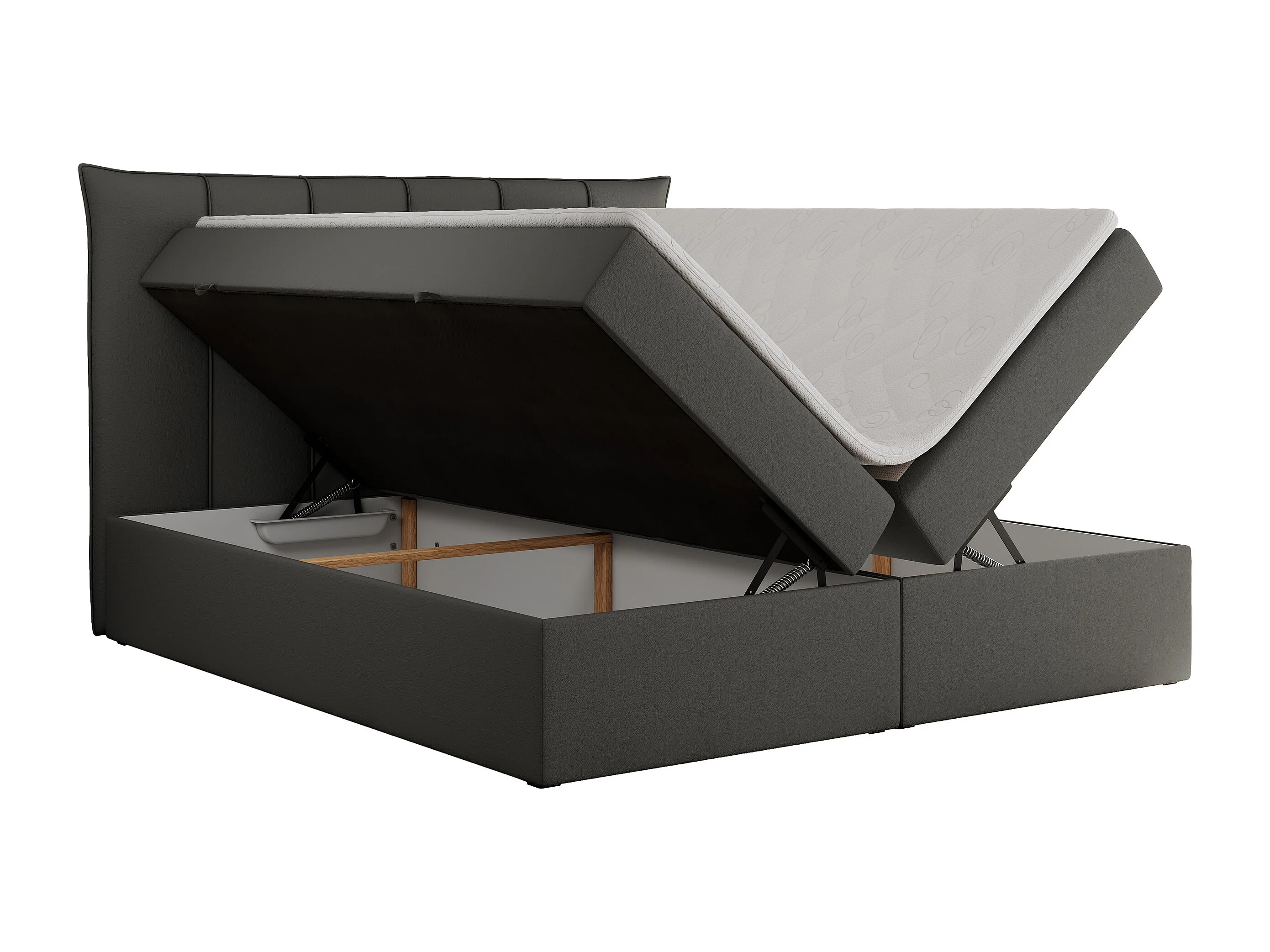 Boxspringbett PREMIUM 10 mit Multipocket-Matratze, gesteppte Kopfstütze, zwei Bettkästen - 160x200 cm - H3 - Dunkelgrau Kunstleder