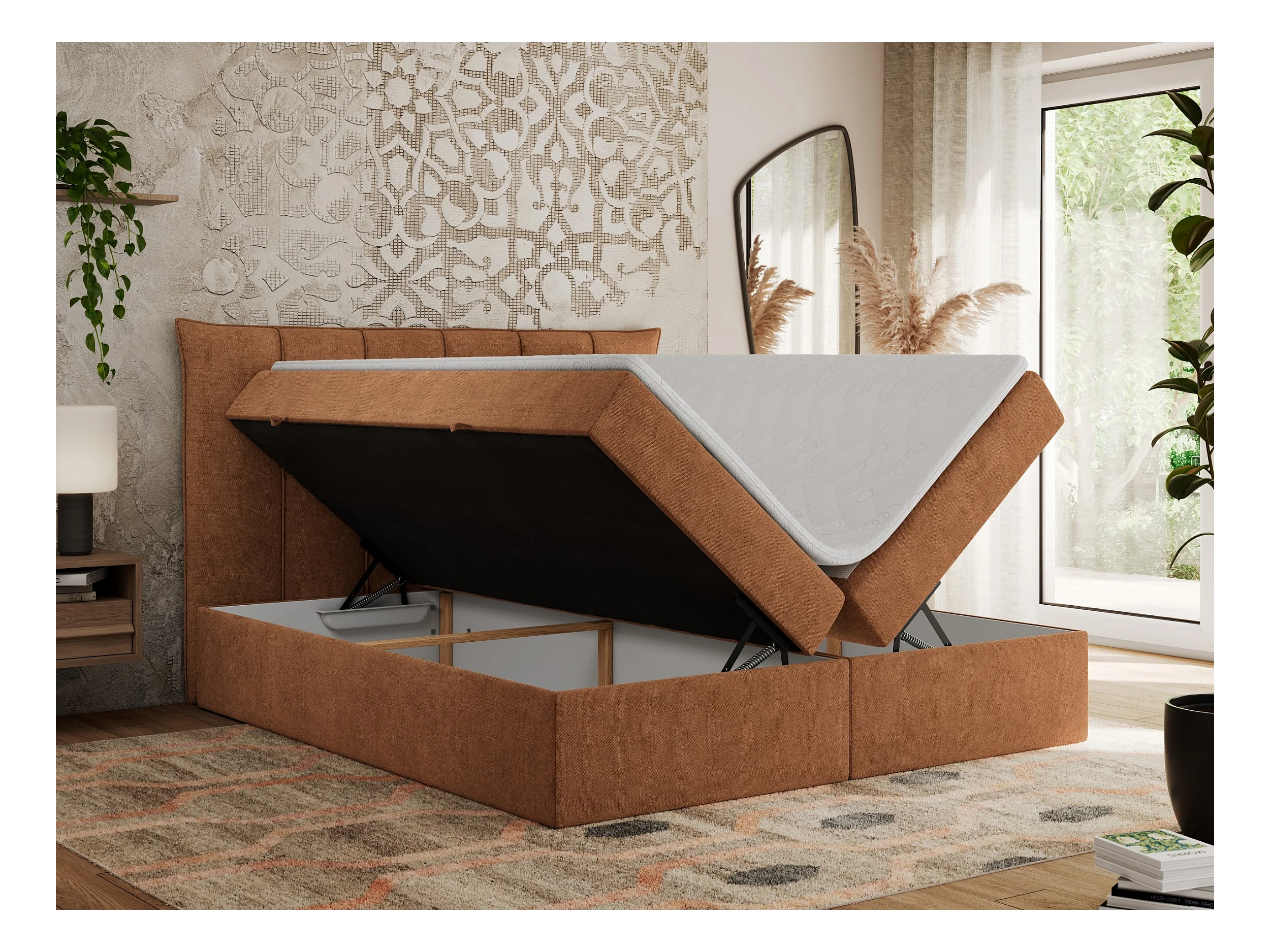 Boxspringbett PREMIUM 10 mit Multipocket-Matratze, gesteppte Kopfstütze, zwei Bettkästen - 160x200 cm - H3 - Orange Strukture