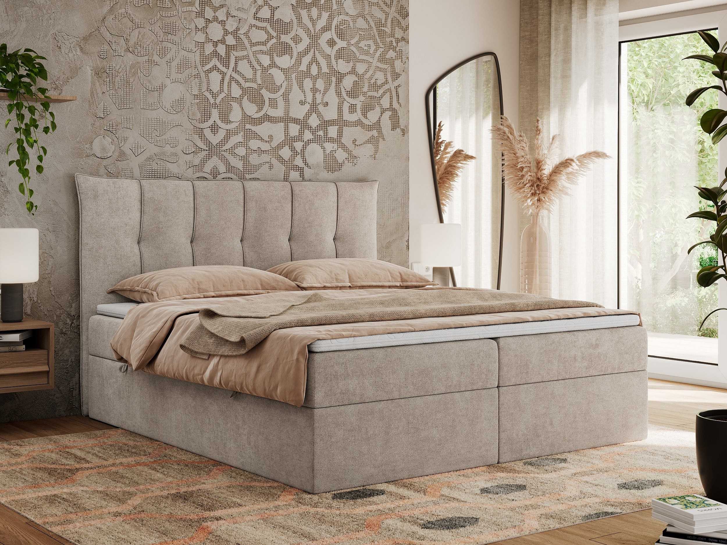 Boxspringbett PREMIUM 10 mit Multipocket-Matratze, gesteppte Kopfstütze, zwei Bettkästen - 180x200 cm - H4 - Beige Strukture