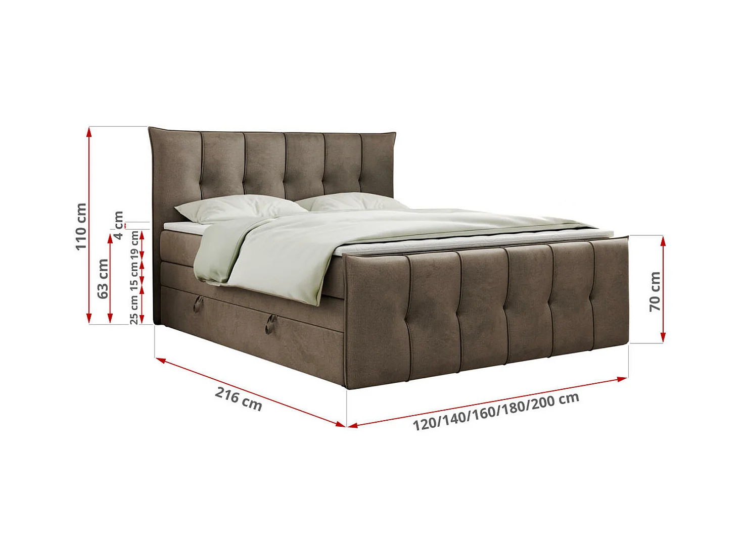 Boxspringbett PREMIUM 11 KING mit Stauraum, gestepptes Kopfteil, zwei Multipocket-Matratzen - 120x200 cm - H4 - Braun Velvet