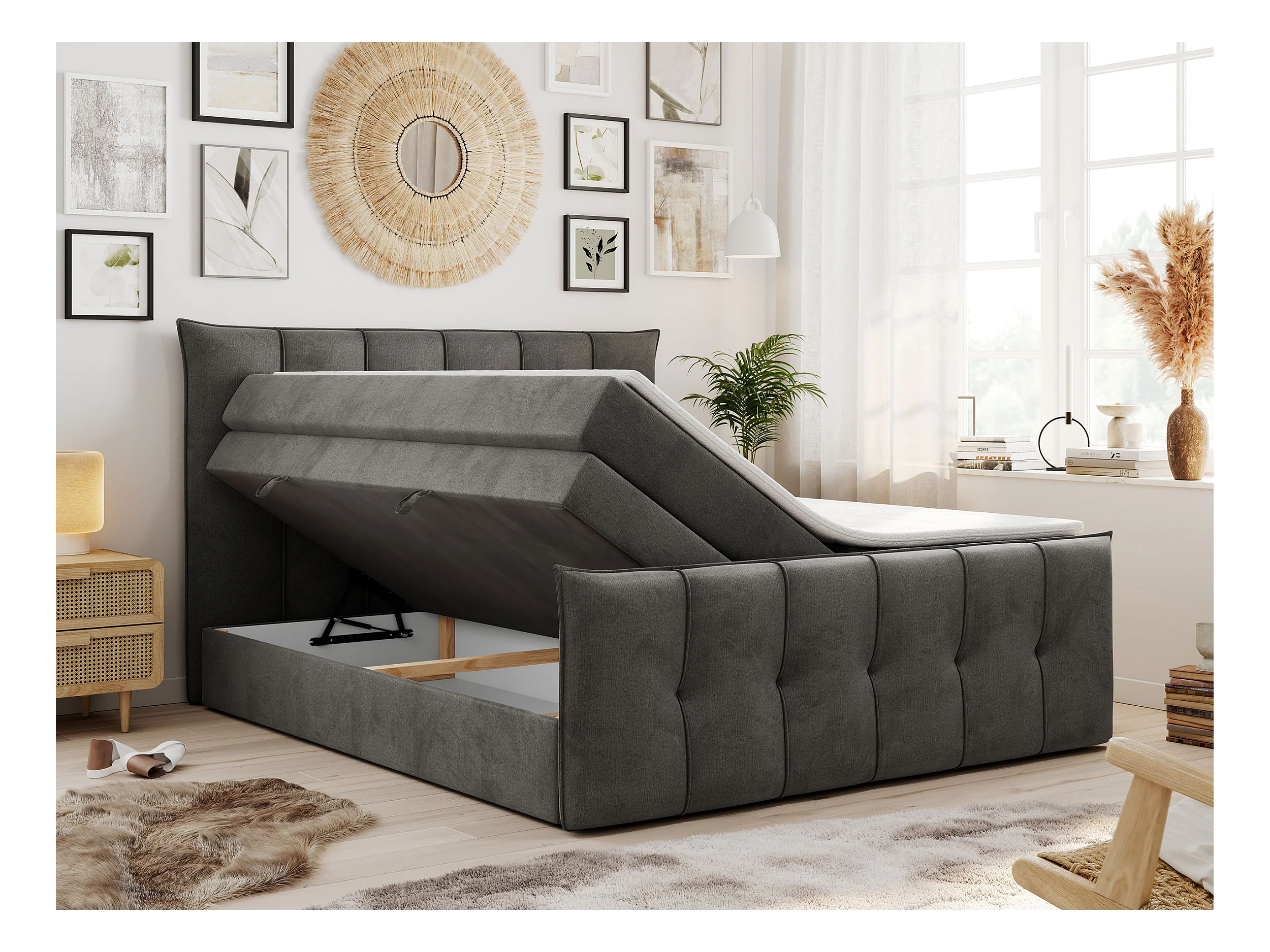 Boxspringbett PREMIUM 11 KING mit Stauraum, gestepptes Kopfteil, zwei Multipocket-Matratzen - 120x200 cm - H4 - Hellgrau Velvet