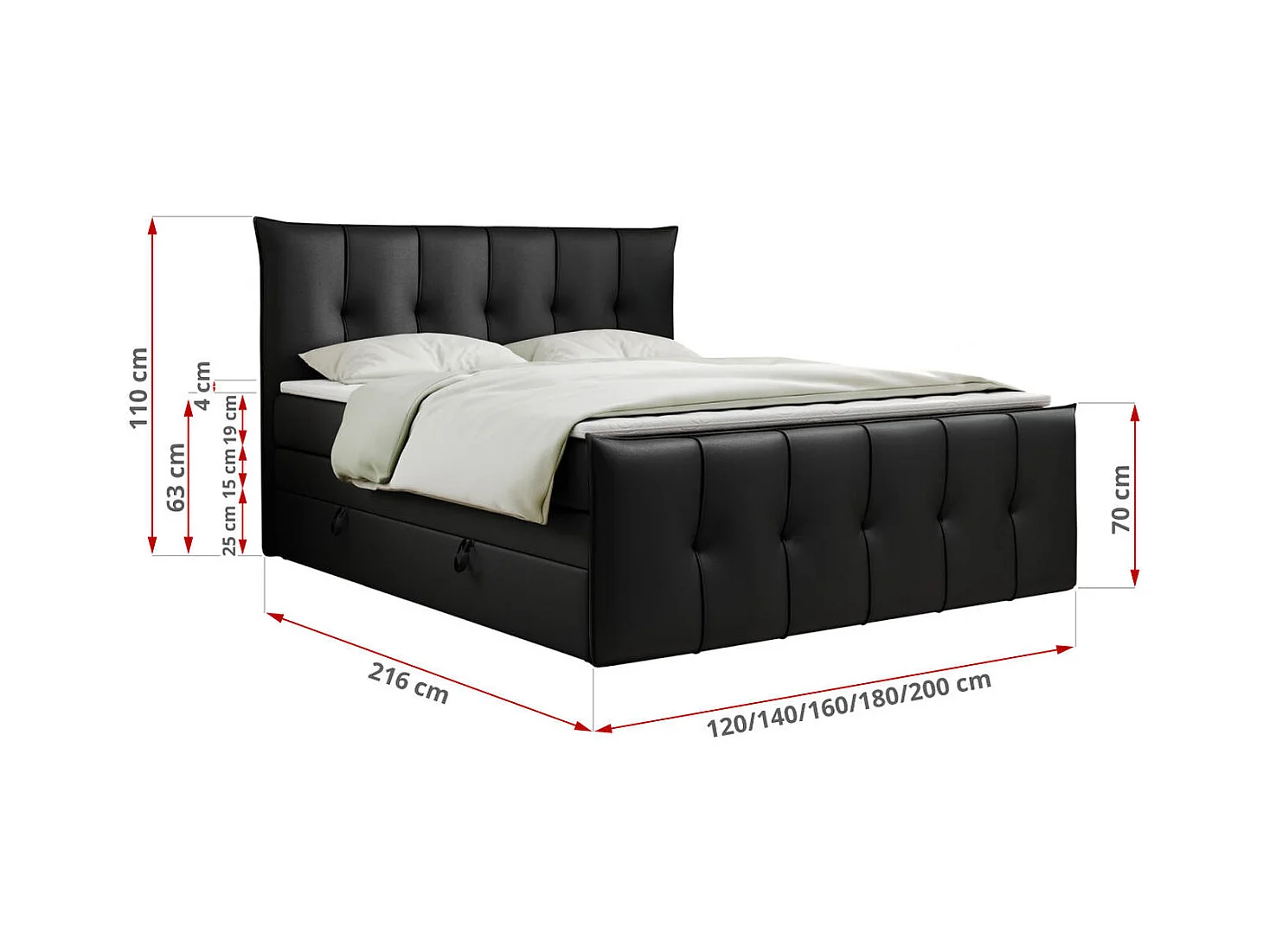 Boxspringbett PREMIUM 11 KING mit Stauraum, gestepptes Kopfteil, zwei Multipocket-Matratzen - 140x200 cm - H3 - Schwarz Kunstleder