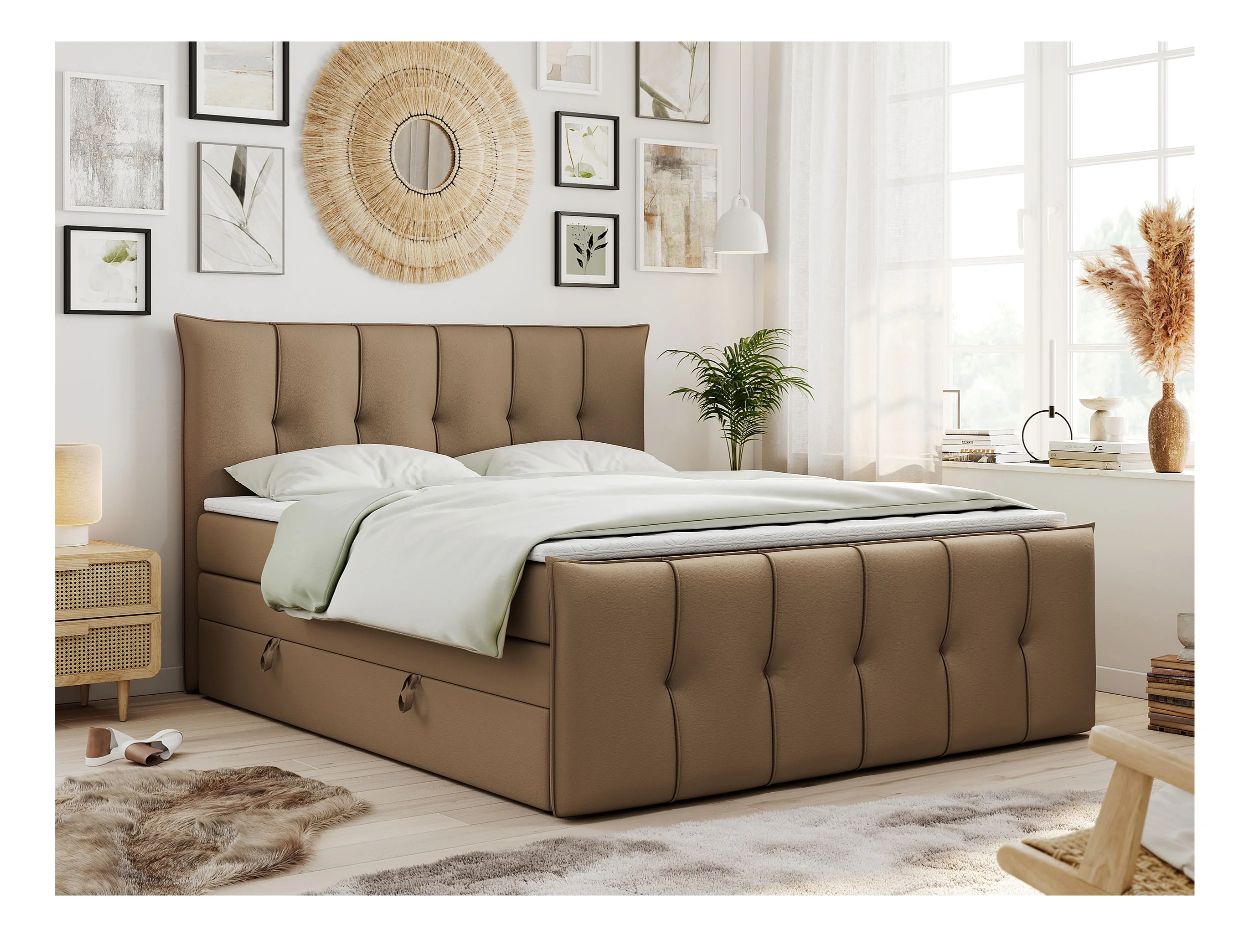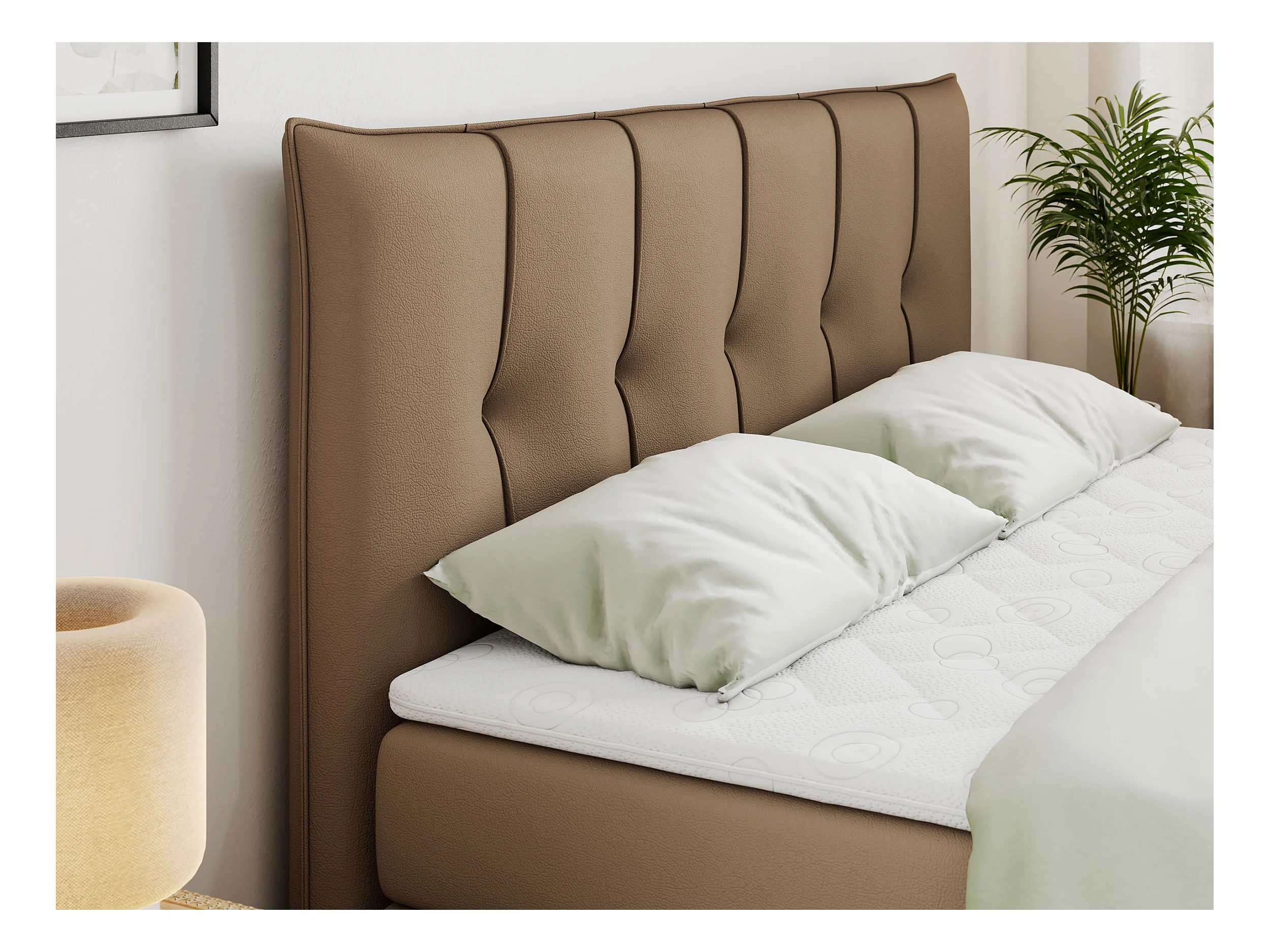 Boxspringbett PREMIUM 11 KING mit Stauraum, gestepptes Kopfteil, zwei Multipocket-Matratzen - 140x200 cm - H4 - Braun Kunstleder