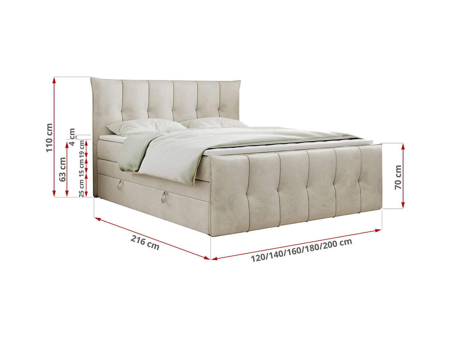 Boxspringbett PREMIUM 11 KING mit Stauraum, gestepptes Kopfteil, zwei Multipocket-Matratzen - 160x200 cm - H3 - Beige Velvet