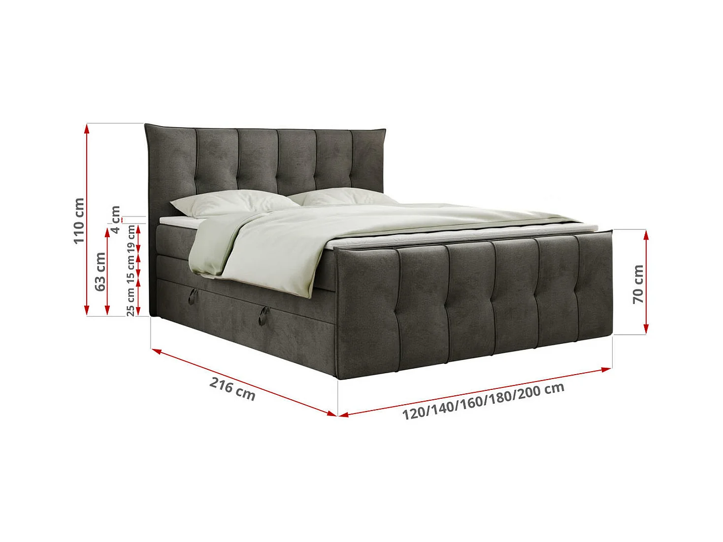 Boxspringbett PREMIUM 11 KING mit Stauraum, gestepptes Kopfteil, zwei Multipocket-Matratzen - 160x200 cm - H4 - Hellgrau Velvet