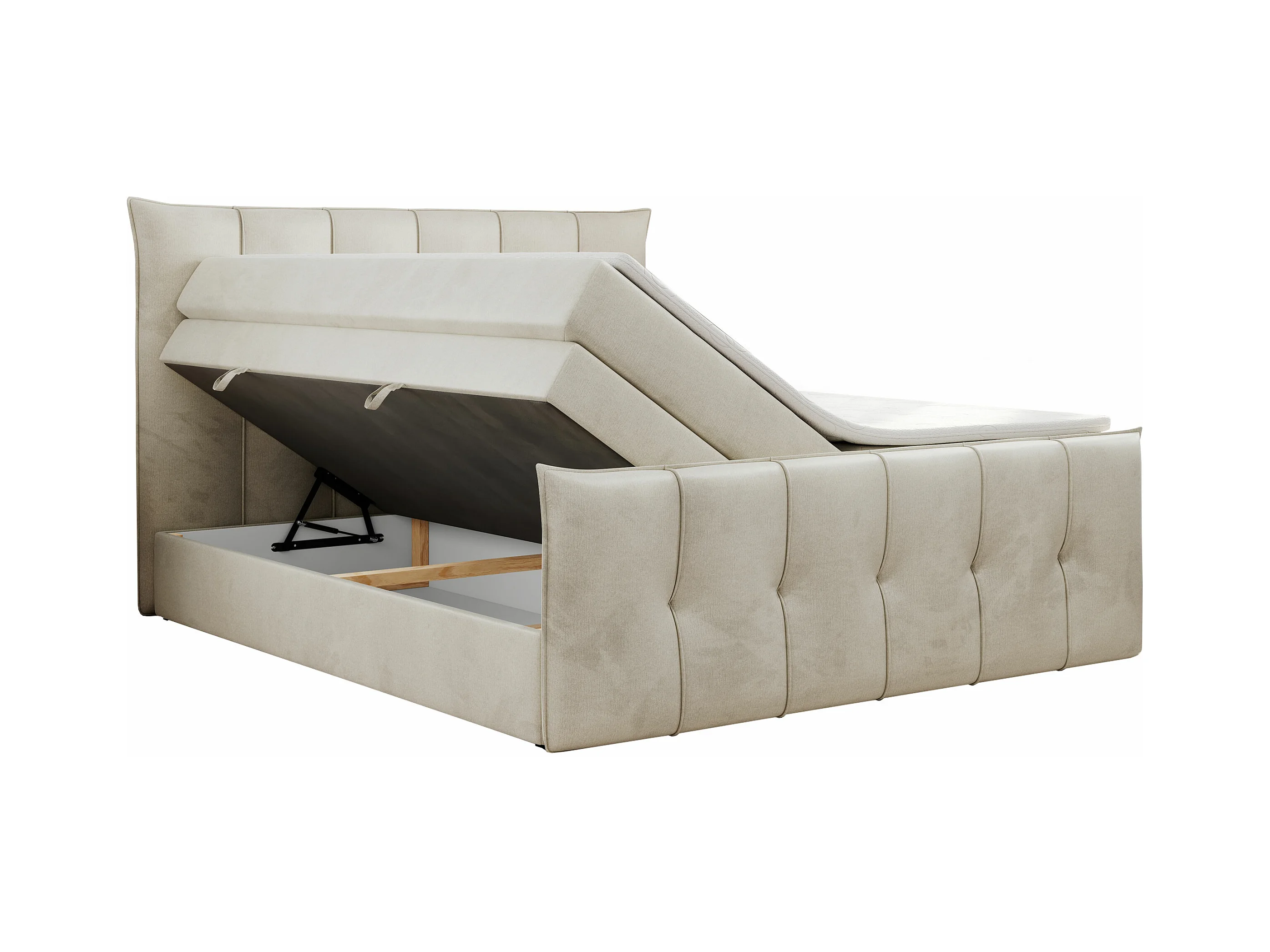 Boxspringbett PREMIUM 11 KING mit Stauraum, gestepptes Kopfteil, zwei Multipocket-Matratzen - 200x200 cm - H4 - Beige Velvet