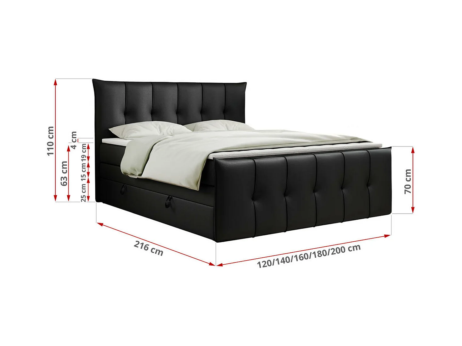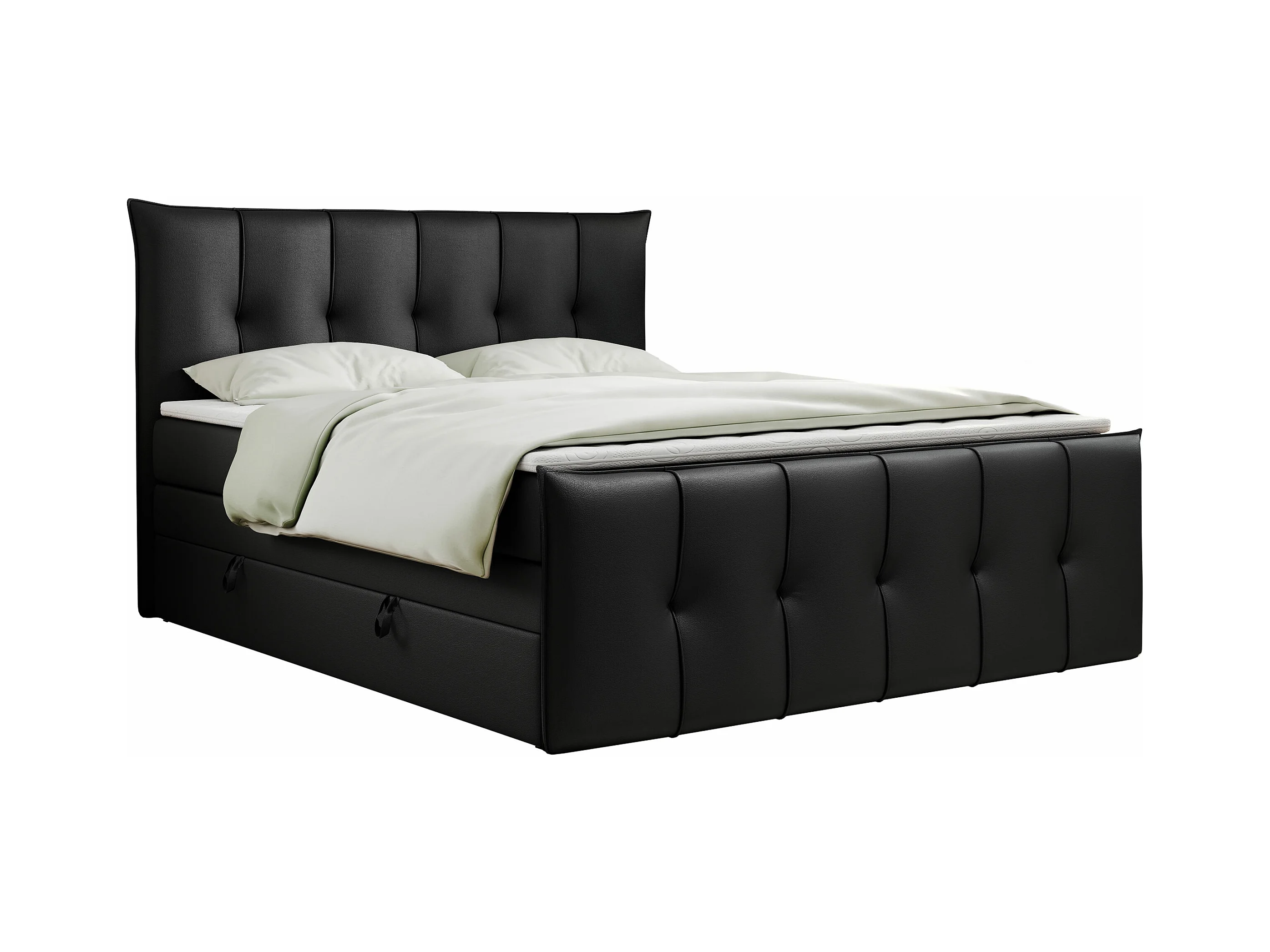 Boxspringbett PREMIUM 11 KING mit Stauraum, gestepptes Kopfteil, zwei Multipocket-Matratzen - 200x200 cm - H4 - Schwarz Kunstleder