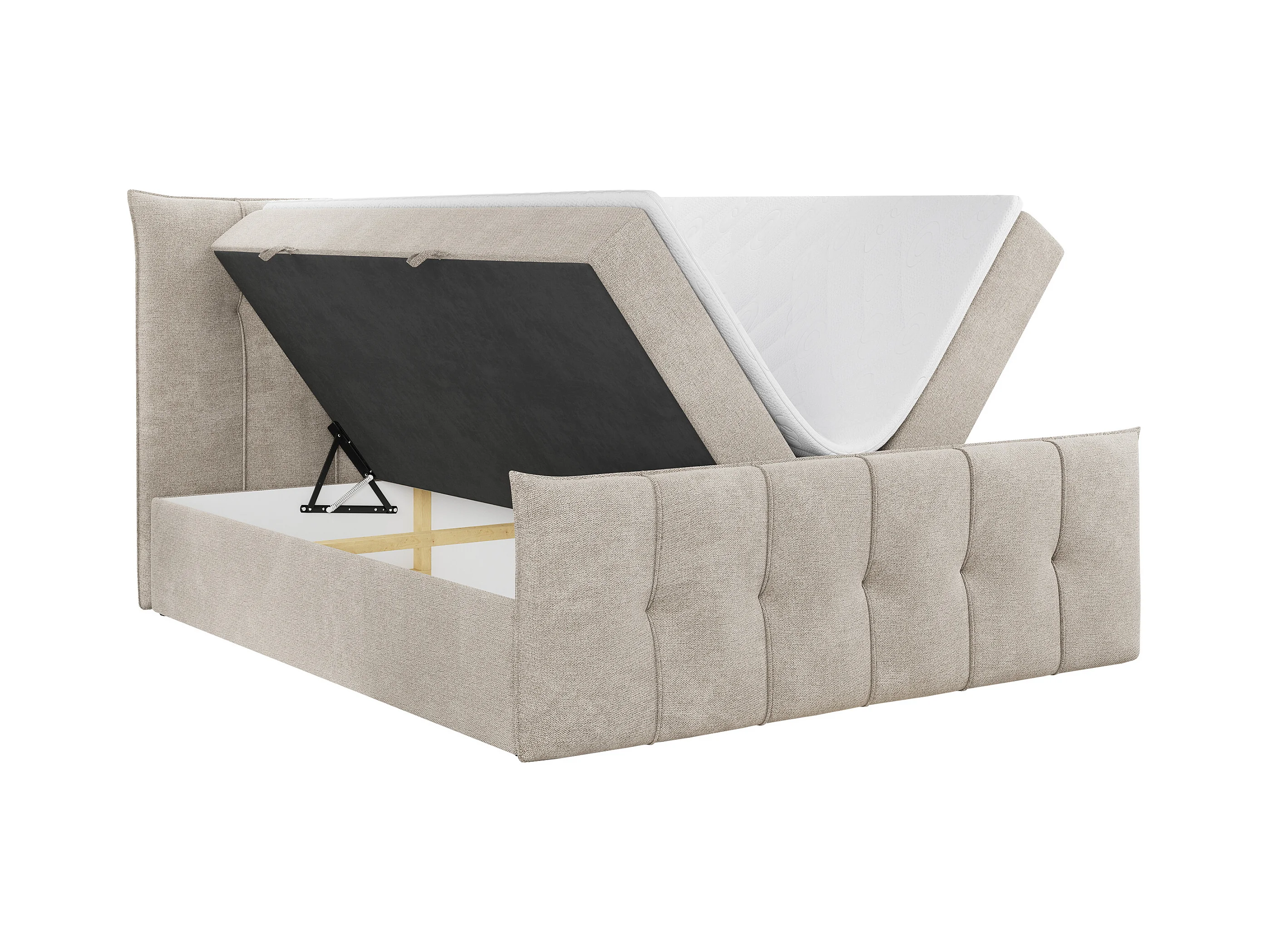 Boxspringbett PREMIUM 11 mit Stauraum, gestepptem Kopfteil, Multipocket-Matratze und Topper - 120x200 cm - H3 - Beige Strukture