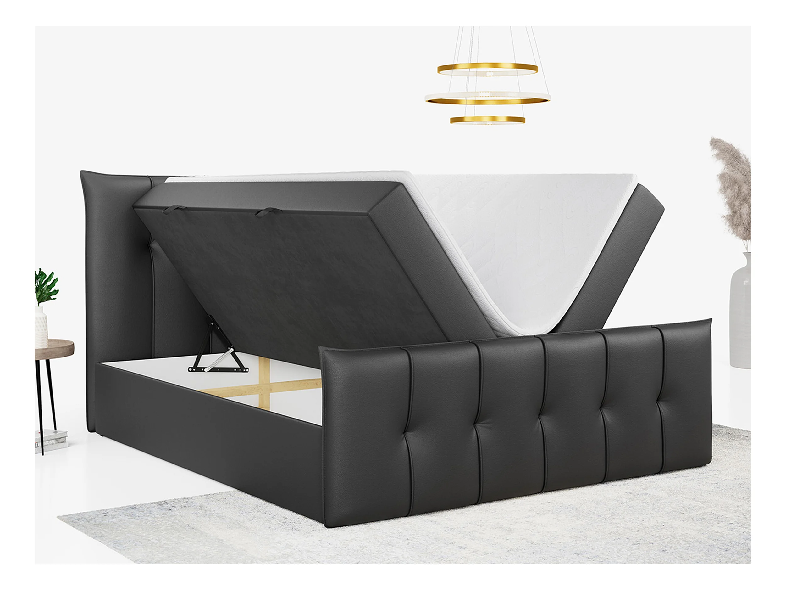 Boxspringbett PREMIUM 11 mit Stauraum, gestepptem Kopfteil, Multipocket-Matratze und Topper - 120x200 cm - H3 - Dunkelgrau Kunstleder
