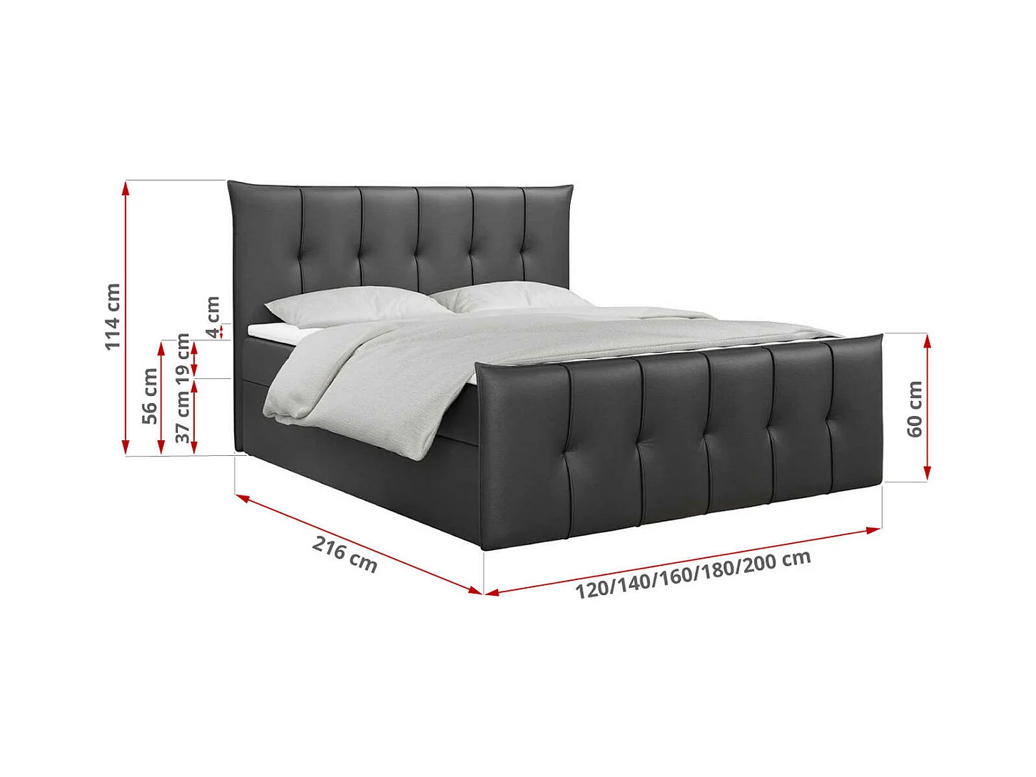 Boxspringbett PREMIUM 11 mit Stauraum, gestepptem Kopfteil, Multipocket-Matratze und Topper - 140x200 cm - H3 - Dunkelgrau Kunstleder