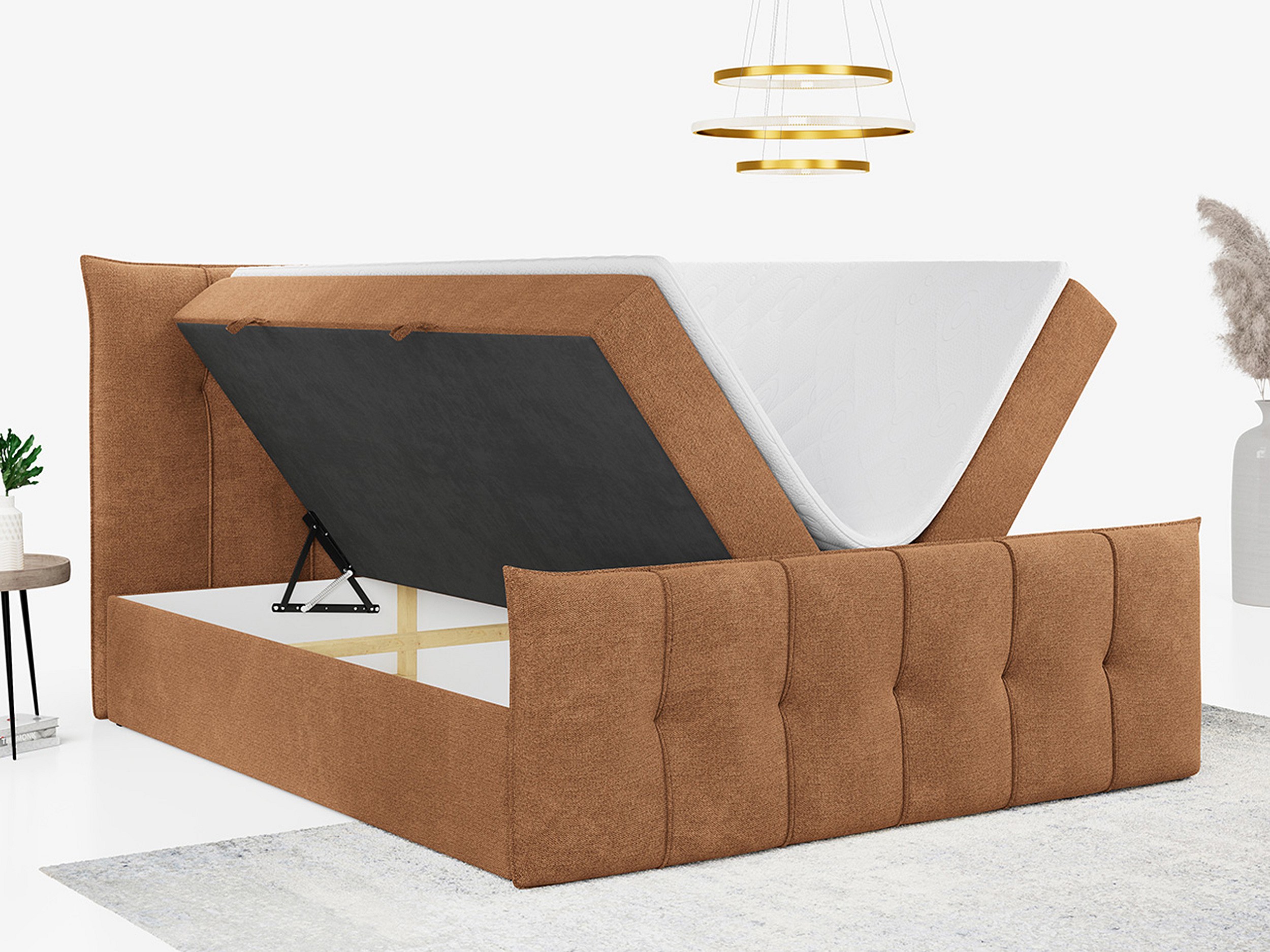 Boxspringbett PREMIUM 11 mit Stauraum, gestepptem Kopfteil, Multipocket-Matratze und Topper - 140x200 cm - H3 - Orange Strukture