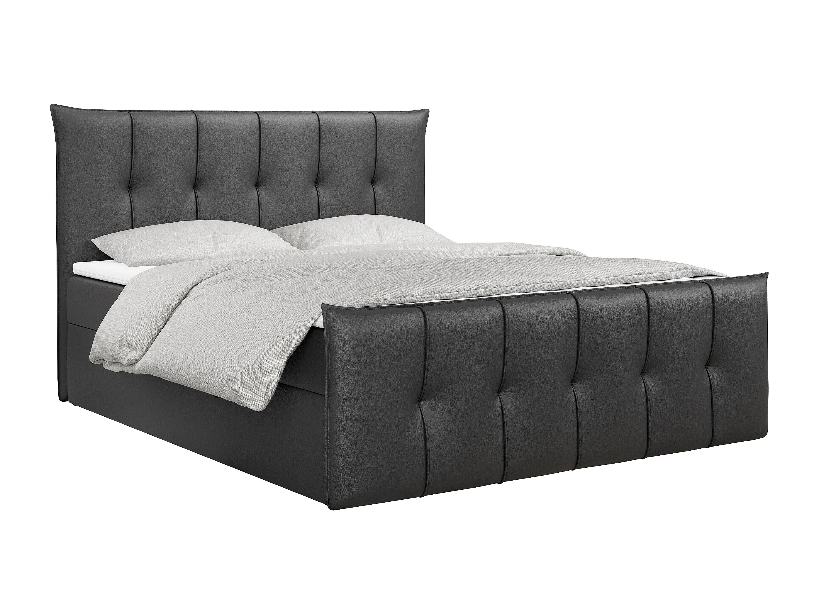 Boxspringbett PREMIUM 11 mit Stauraum, gestepptem Kopfteil, Multipocket-Matratze und Topper - 200x200 cm - H4 - Dunkelgrau Kunstleder