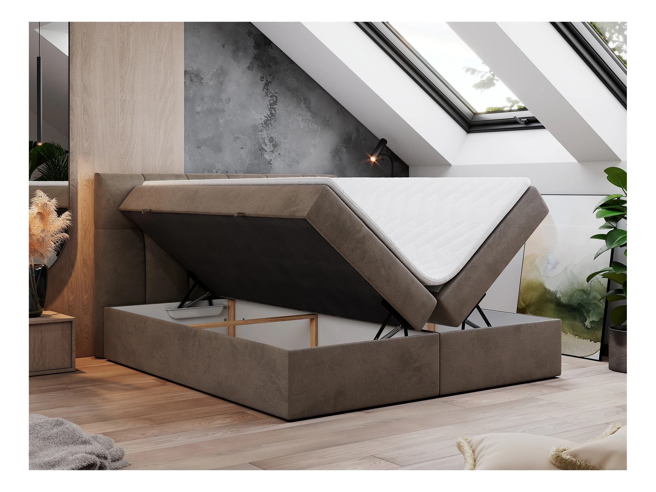 Boxspringbett RICO, Doppelbett mit Matratze, zwei Bettkästen, Bett mit Kopfteil - 120x200 cm - H4 - Braun Velvet
