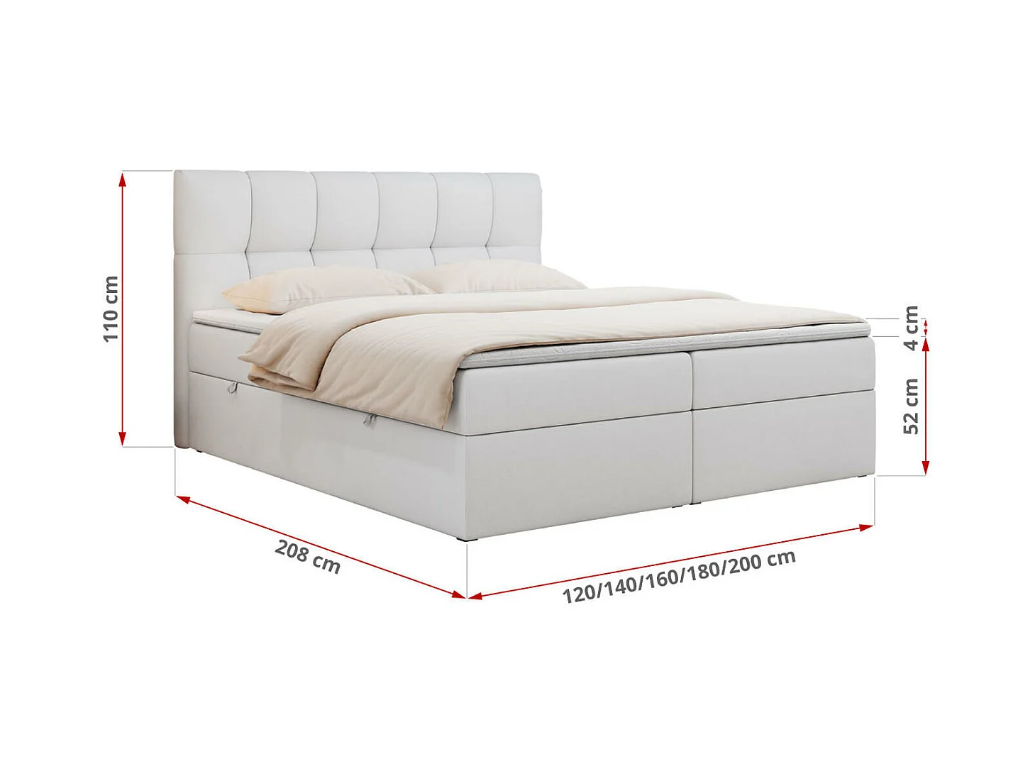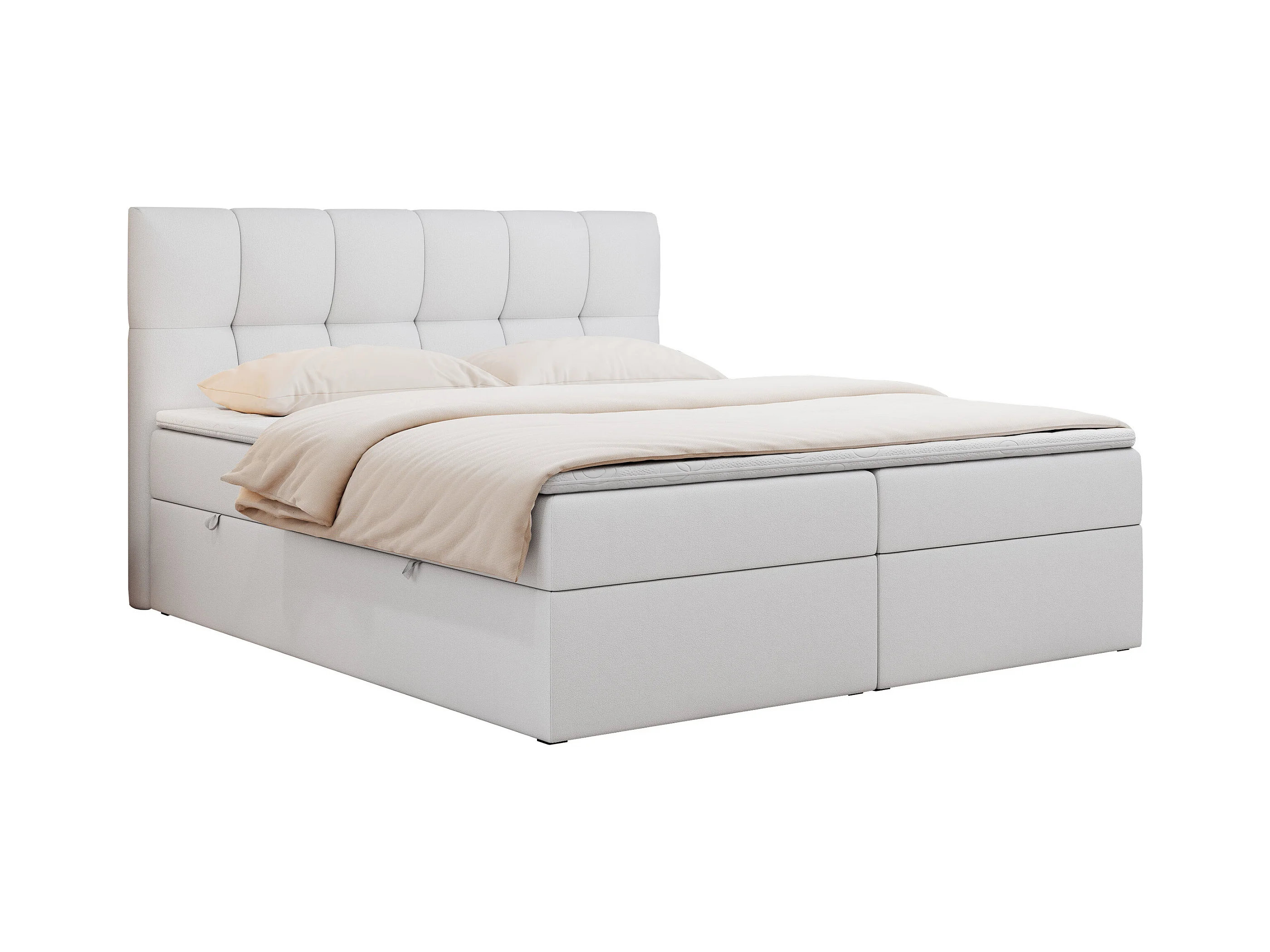 Boxspringbett RICO, Doppelbett mit Matratze, zwei Bettkästen, Bett mit Kopfteil - 120x200 cm - H4 - Weiß Kunstleder