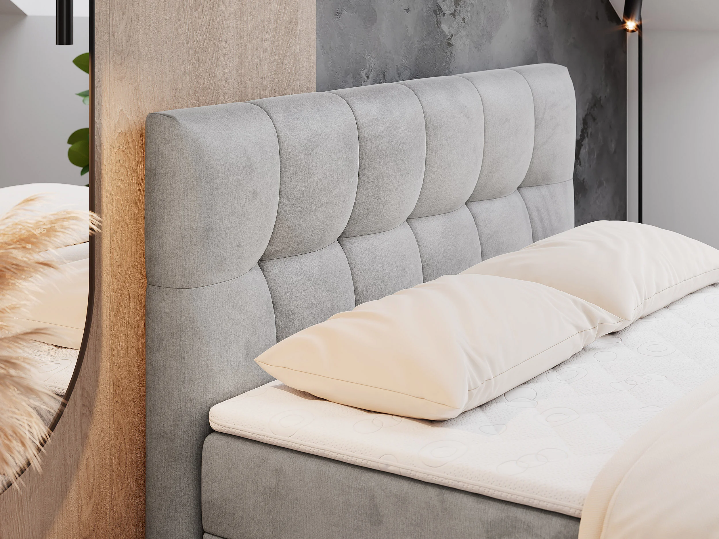 Boxspringbett RICO, Doppelbett mit Matratze, zwei Bettkästen, Bett mit Kopfteil - 140x200 cm - H3 - Hellgrau Velvet